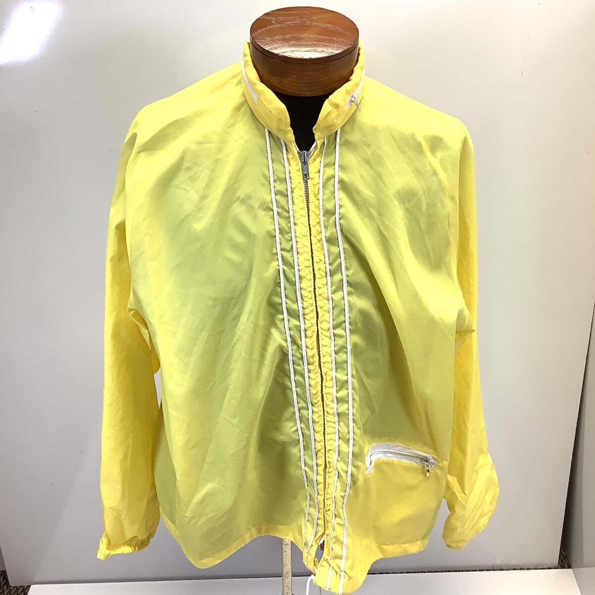 Vtg 70s Sz XL Hollywood Design Hidden Hood Yellow Windbreaker Jacket Full Zip