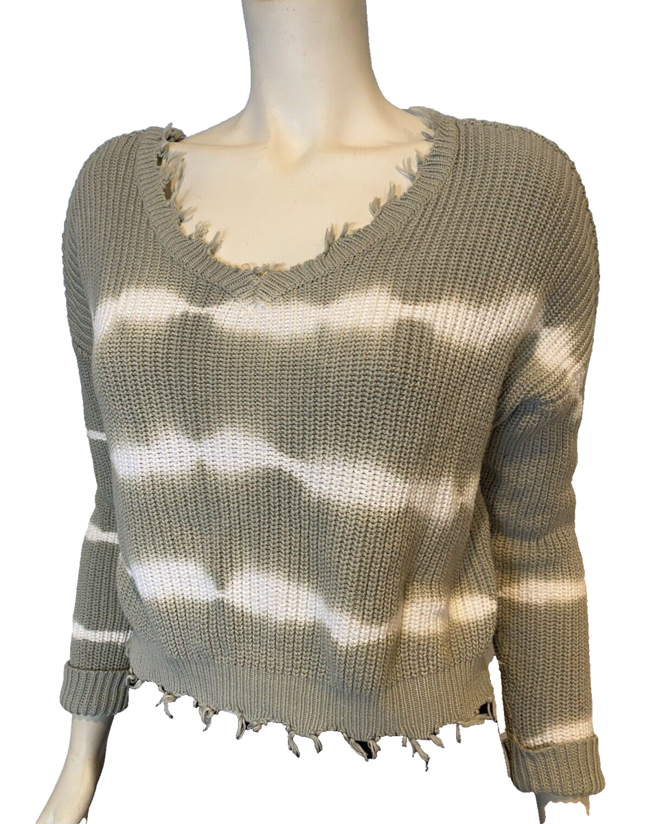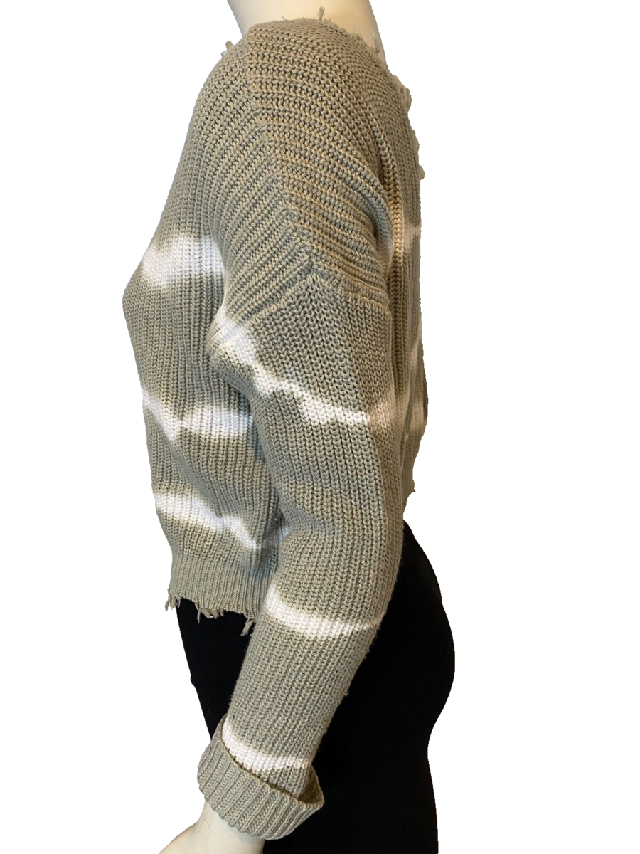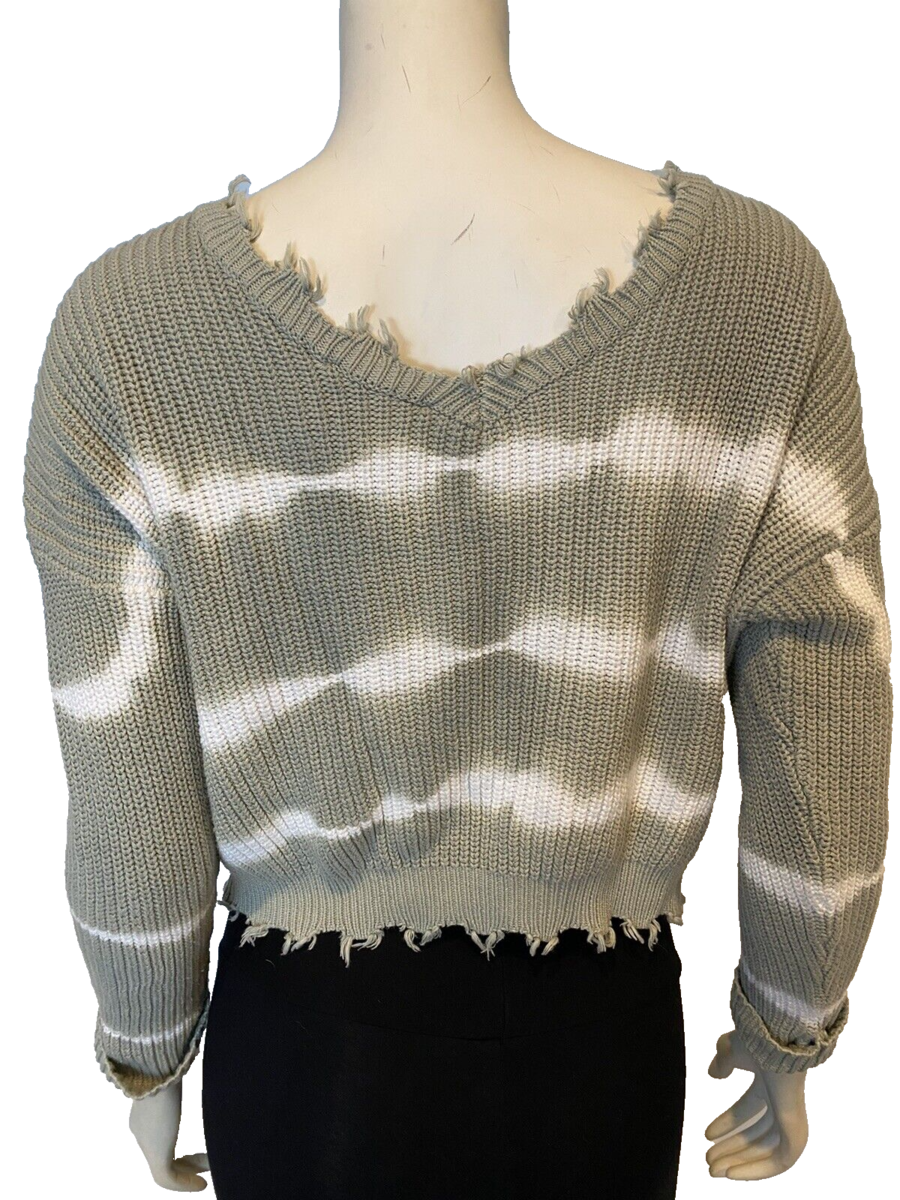 Jessica Simpson Sage Green and White Striped V Neck Cropped LS Sweater Sz L