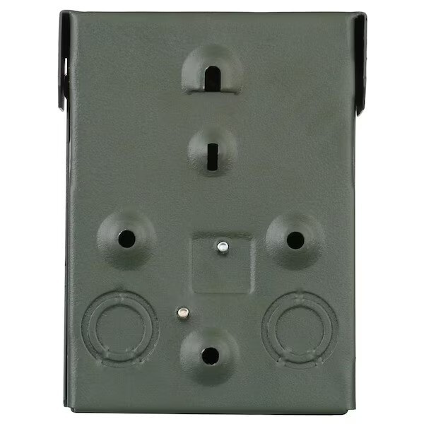 The GE Backyard Outlet with 2-20 Amp GFCI Receptacles offers an ideal way to put power outdoors. Its compact design conserves space, and the rolled edge hinged door allows cords to exit freely. This item comes completely assembled for ease of installation.