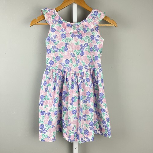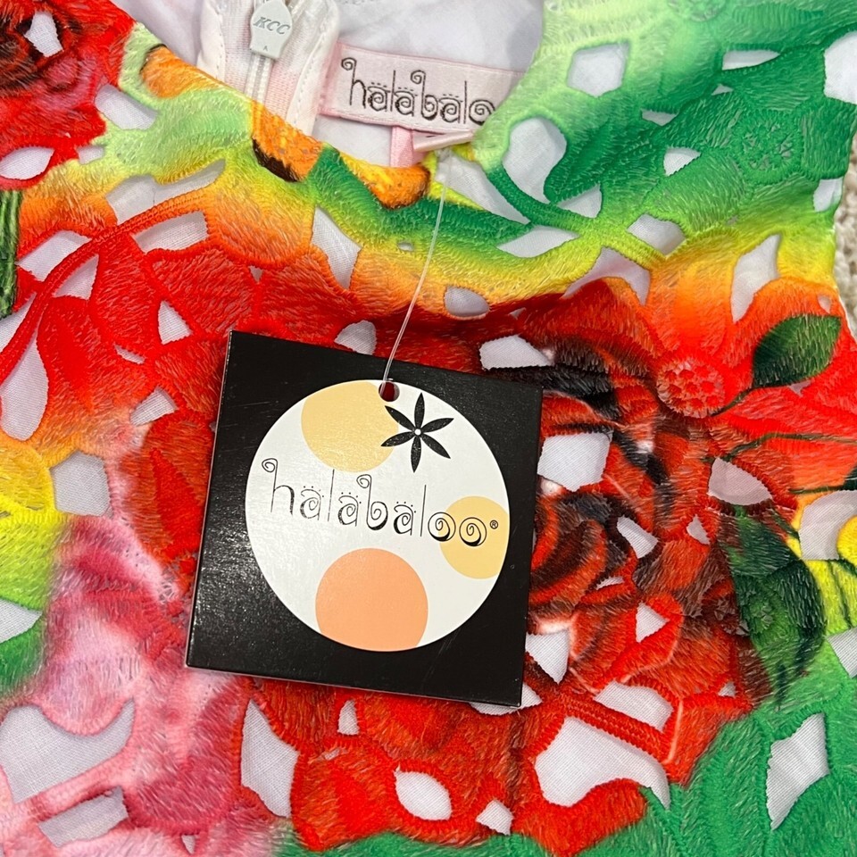 Halabaloo Girls Rainbow Floral Laser-Cut Dress 6X Polyester Cotton Blend Bow Acc