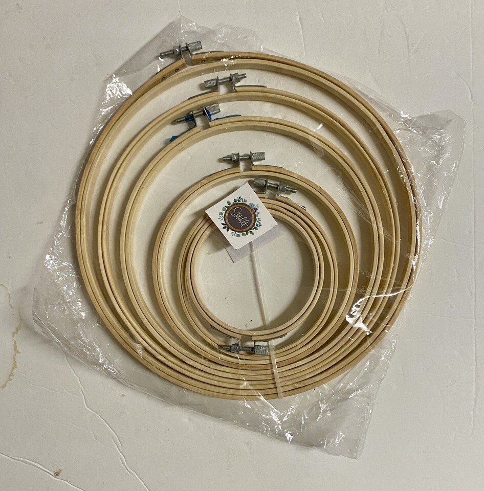 Wooden Round Embroidery Hoops Frames Screw Set Of 6 New