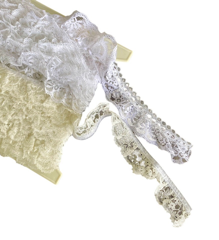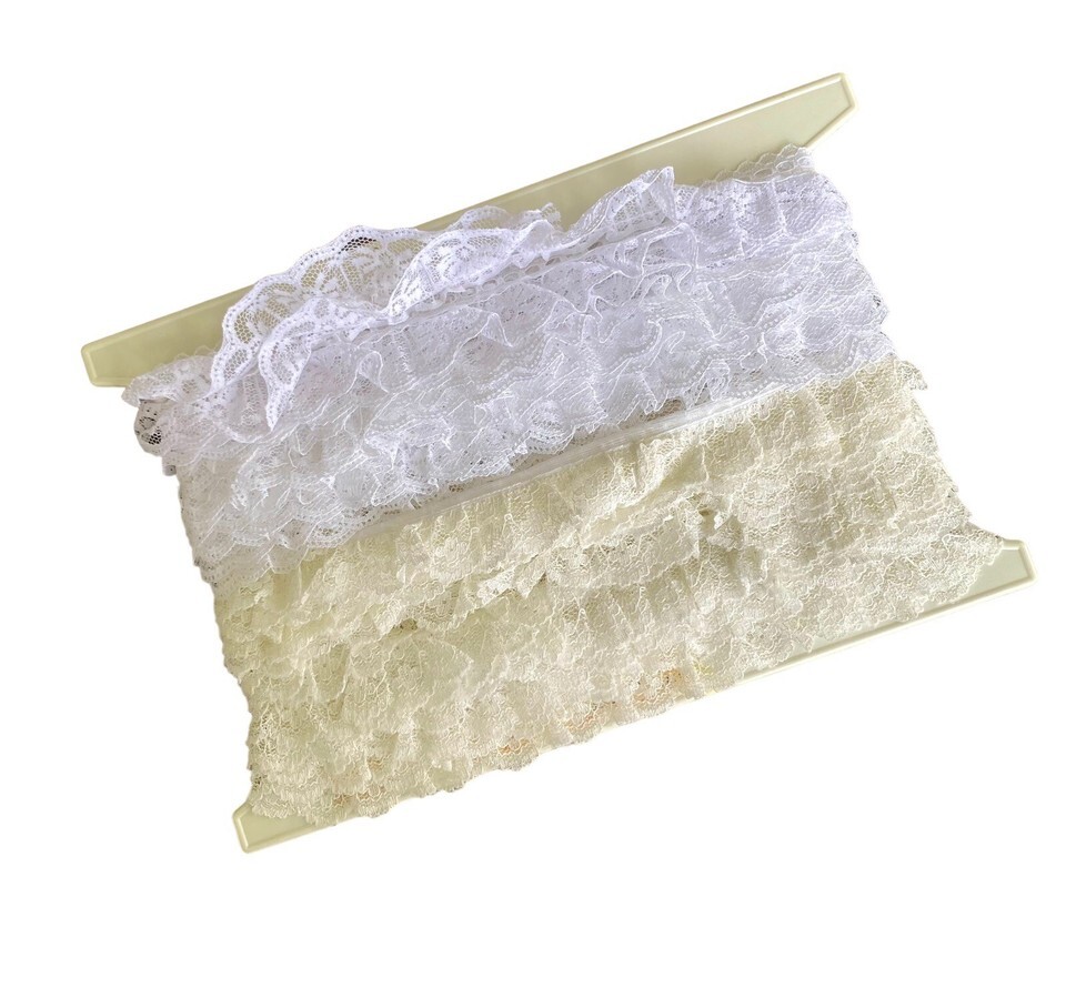 Vintage Nylon Lace White and Cream Gathered Ruffled Lot 14 Yds + Dress Trim
