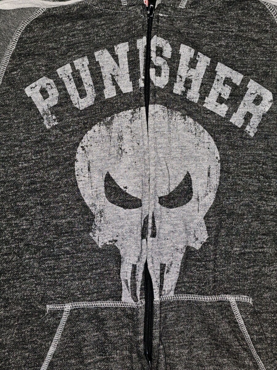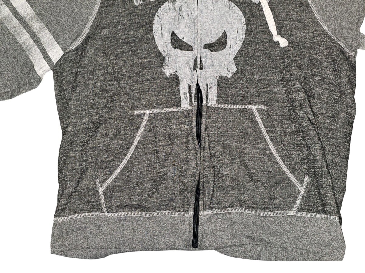 Official Marvel The Punisher Hooded Sweatshirt Hoodie Full-Zip Sweater Gray Sz L