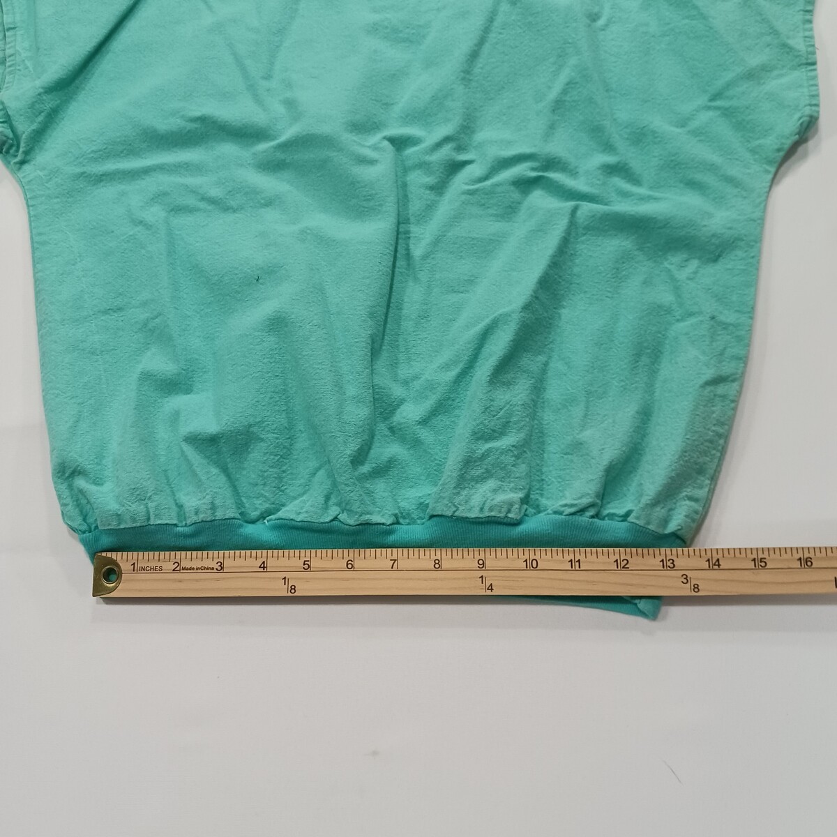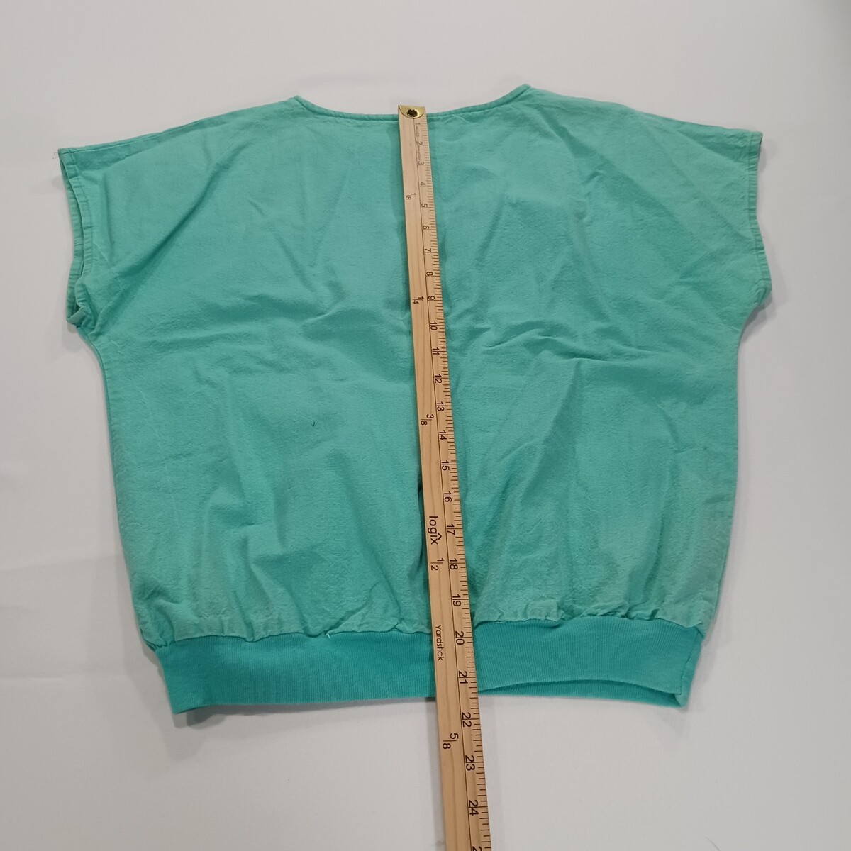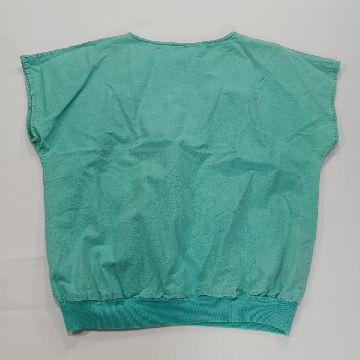 The 80s Vintage LA Sport Works Top is a women's button-up blouse in a casual and relaxed fit, perfect for everyday wear. Made of breathable cotton material, this green top features a solid pattern with a round neckline and short sleeves, giving it a classic and vintage look. The shirt also includes stylish accents like button closures and a ribbed hem, adding to its comfortable and stylish appeal. Ideal for those who appreciate retro fashion and quality craftsmanship, this blouse is a timeless addition to any wardrobe.