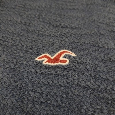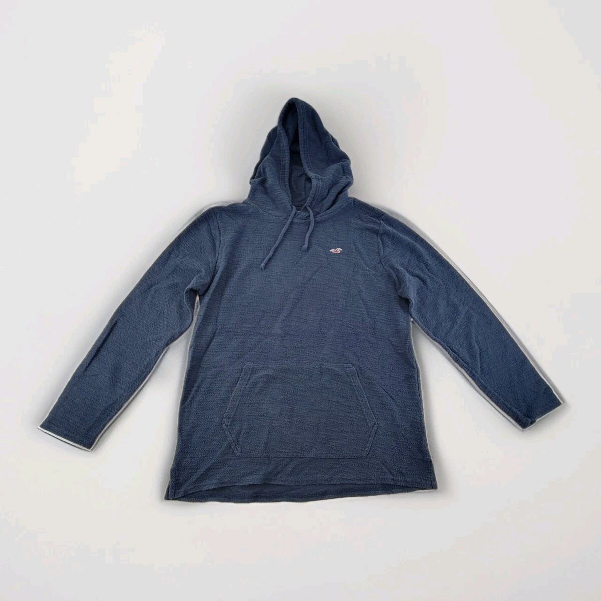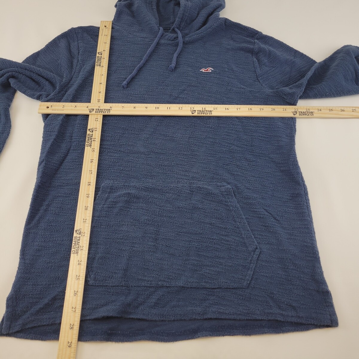 Hollister Mens Sz L Blue Hoodie Pullover Textured Knit Logo Pocket Cotton Blend