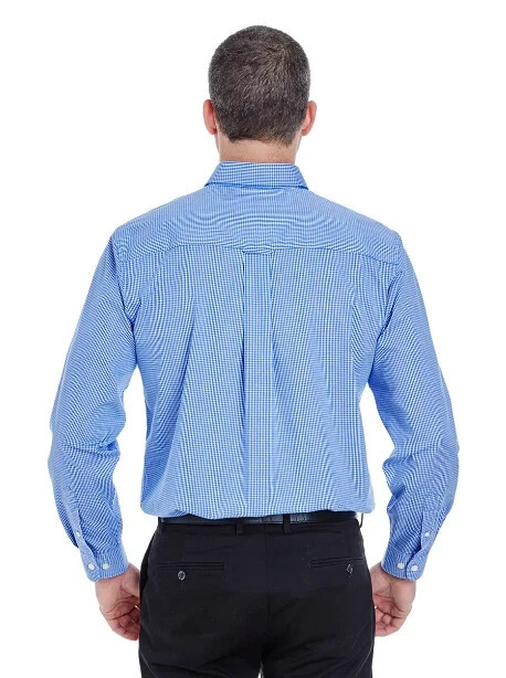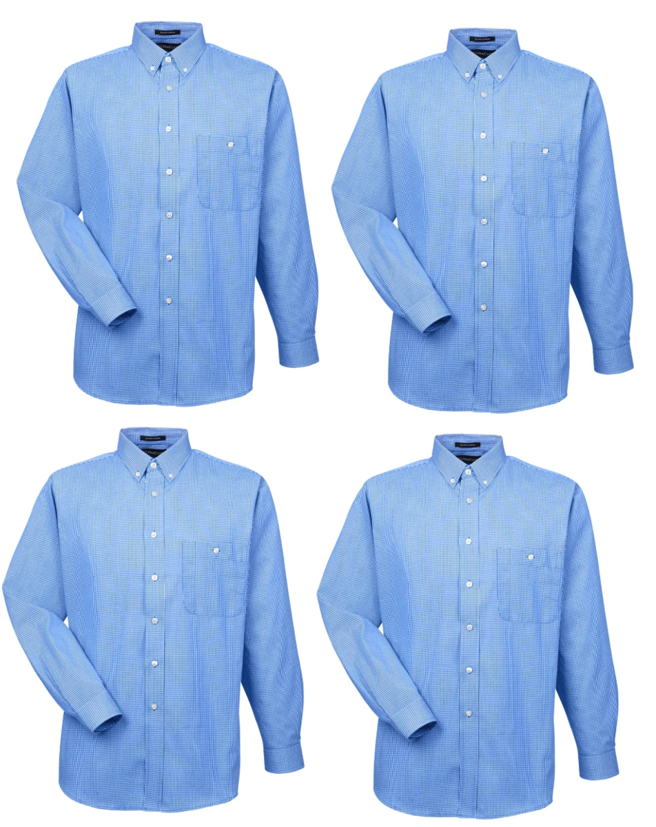 4 Pack Ultra Club Men's Long Sleeve Button Shirt Blue Mini Check Poplin