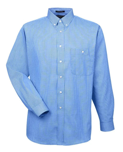 4 Pack Ultra Club Men's Long Sleeve Button Down Dress Shirt Blue Mini Check
