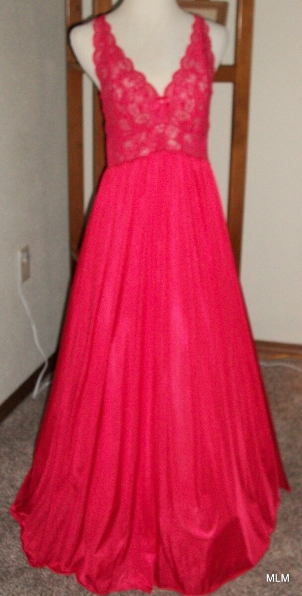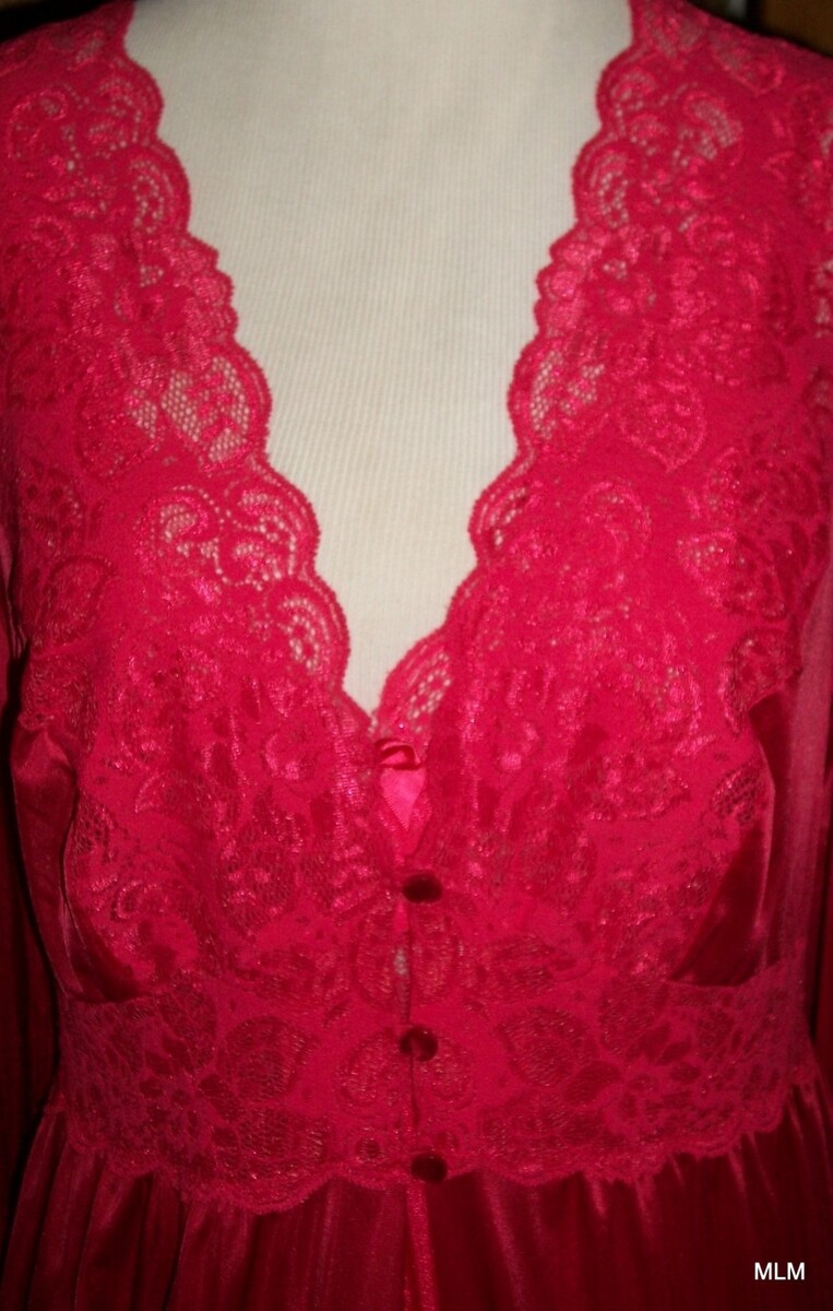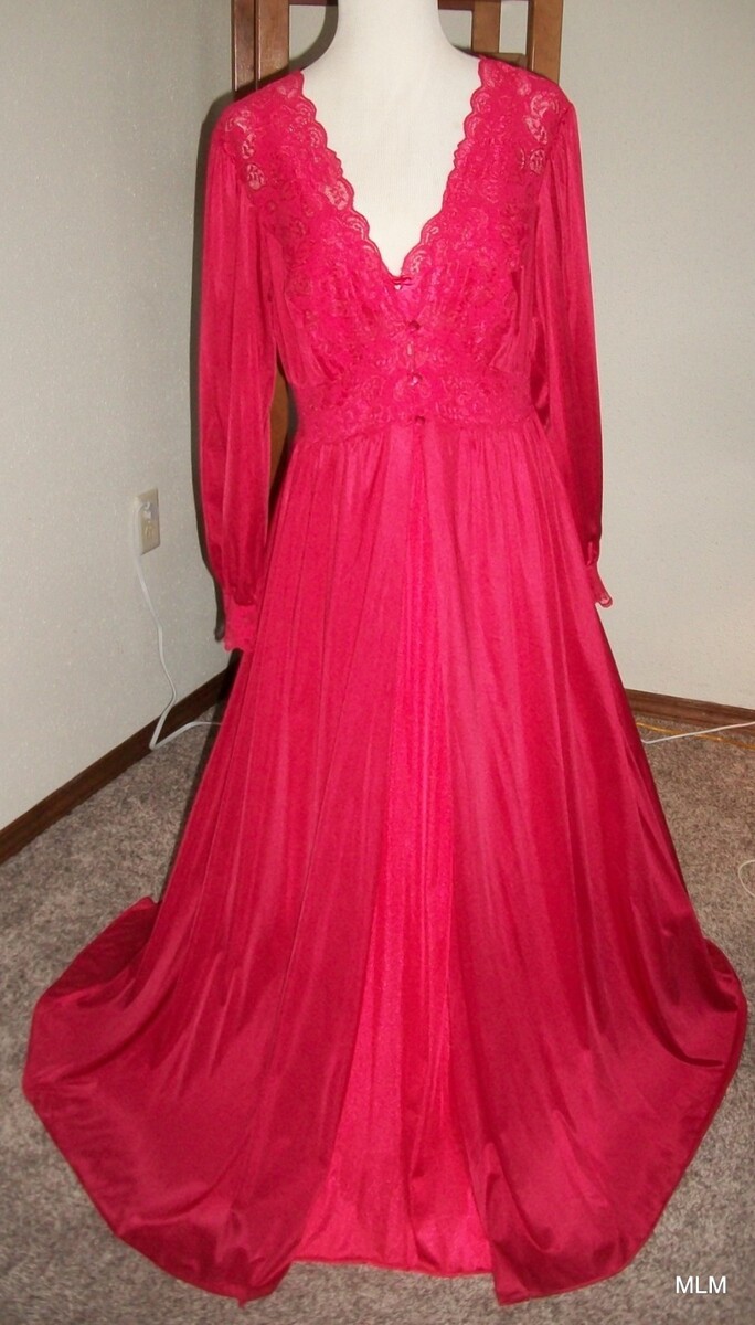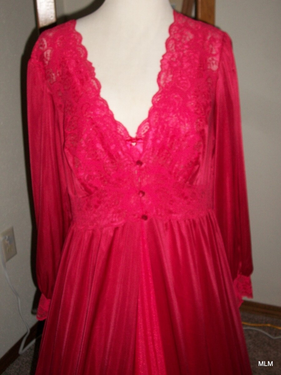 Vintage SHADOWLINE Incredibly Soft Nylon Long Red Nightgown & Robe Peignoir