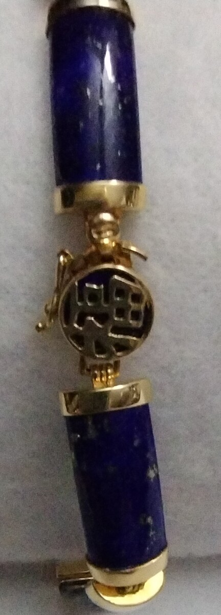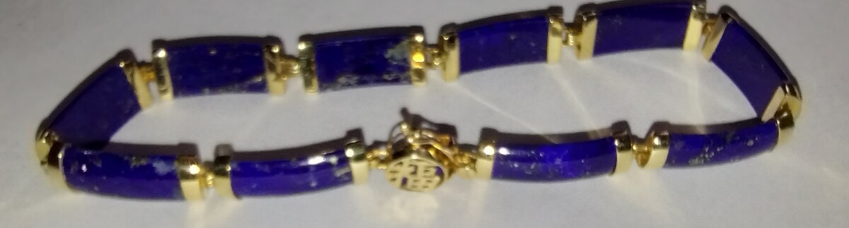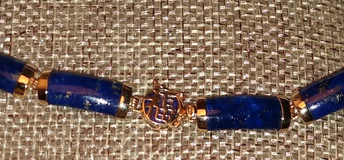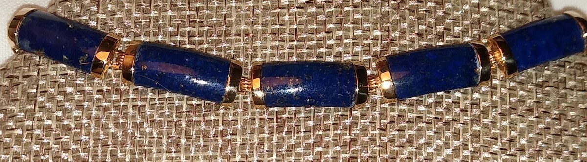Natural Lapis Lazuli 14k Yellow Gold Good Luck Bracelet Vinr tage #F21-1104-01