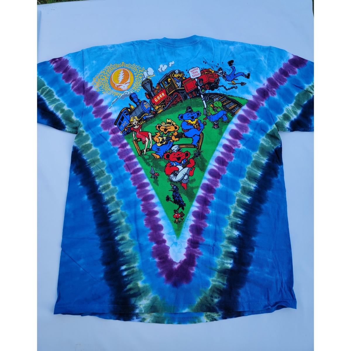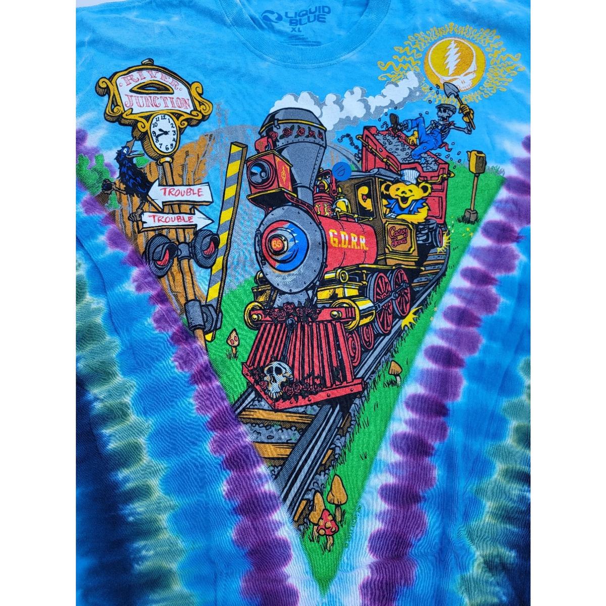 Grateful Dead Casey Jones Train Liquid Blue Tie Dye Size XL T-Shirt