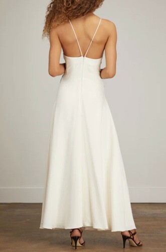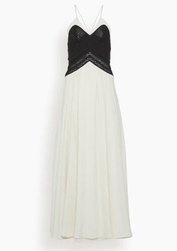 The Minuit Robe Longue in Ivory/Noir is a signature piece from their collection.