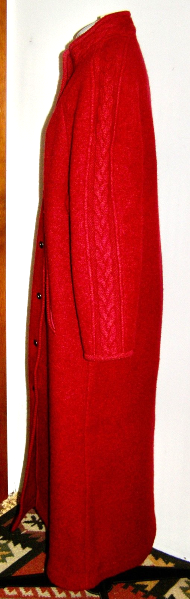 VINT. BROOKS BROTHERS DEEP RED BOILED WOOL BUTTON DOWN LONG COAT+CABLES -Sz.MED