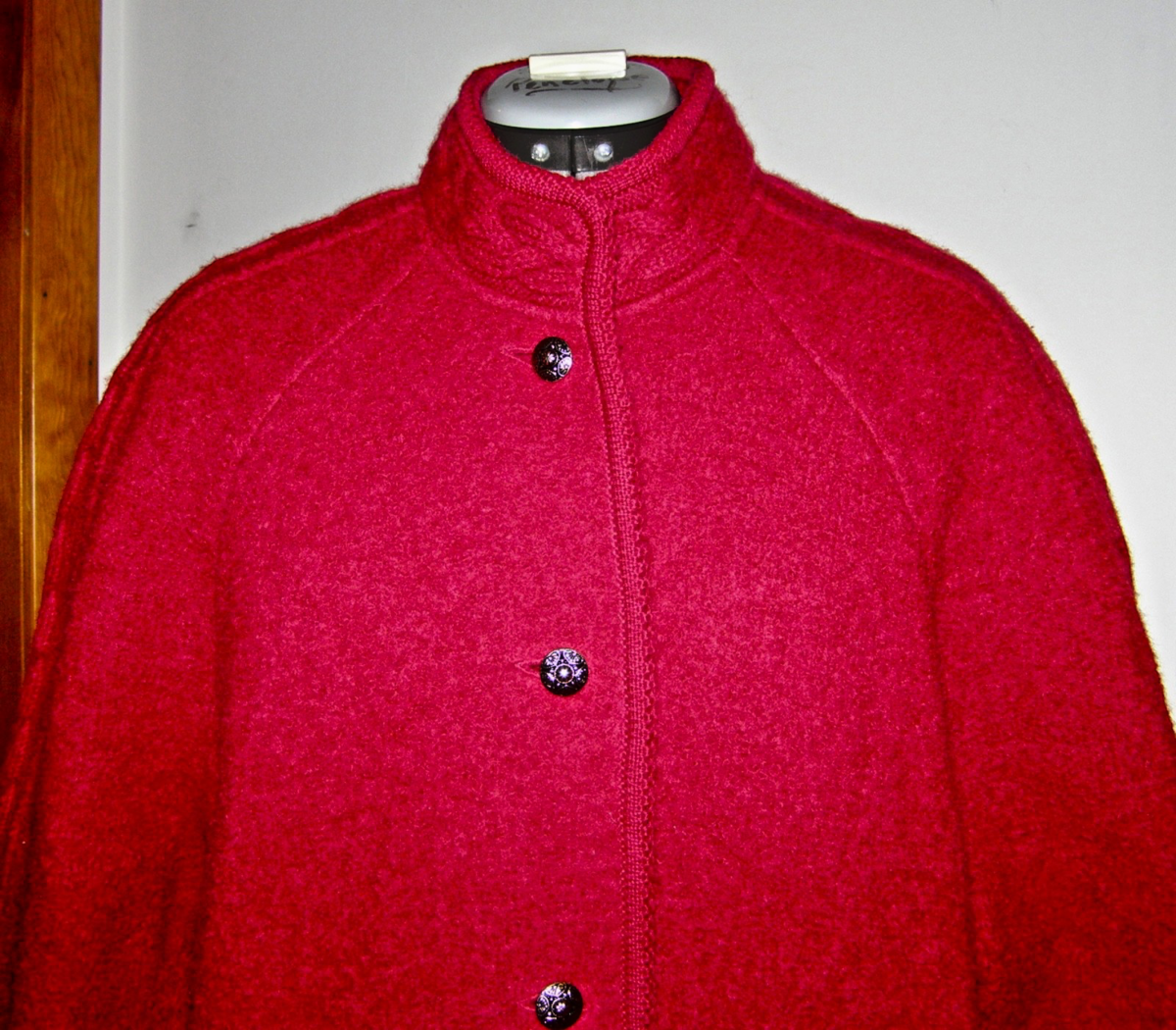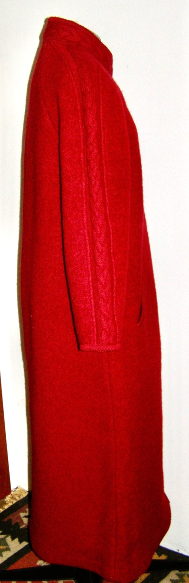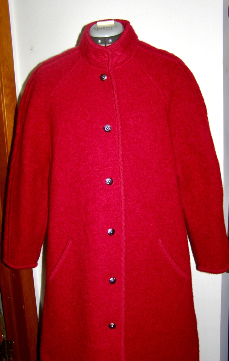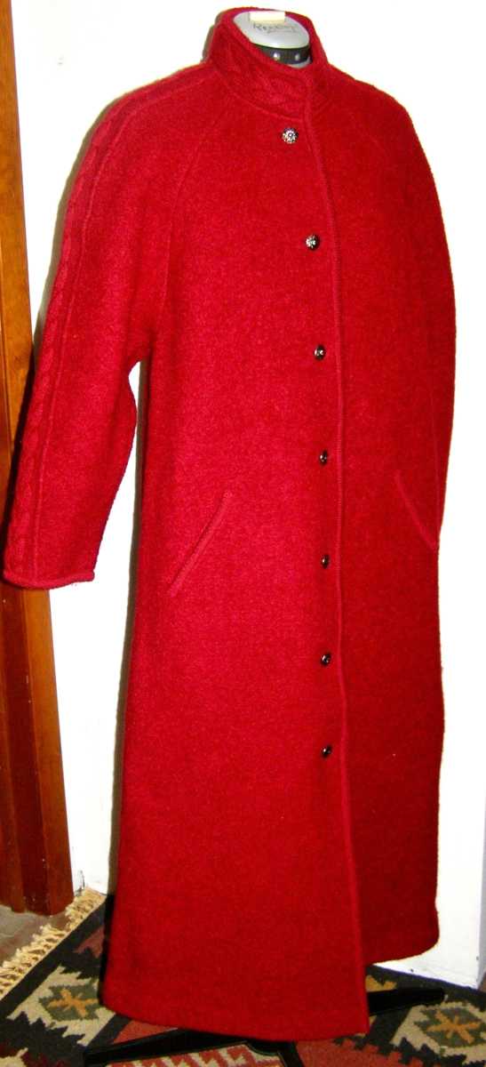 DEEP RED BOILED WOOL LONG COAT, w/