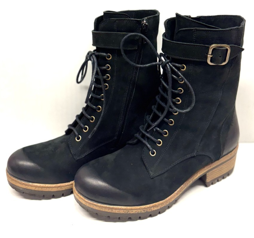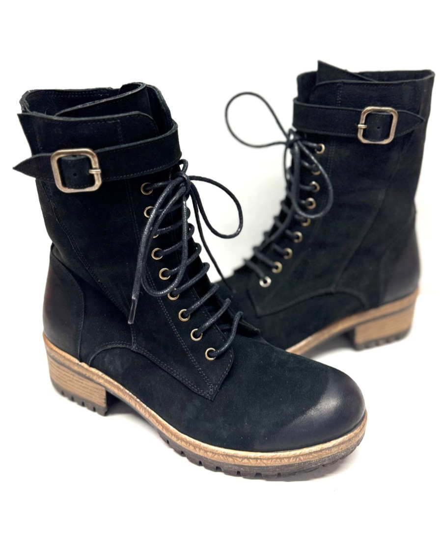 MIZ MOOZ NUBUCK LEATHER BOOTS LACE UP SIDE ZIP BLACK 37EU / 7US NEW # Z-131
