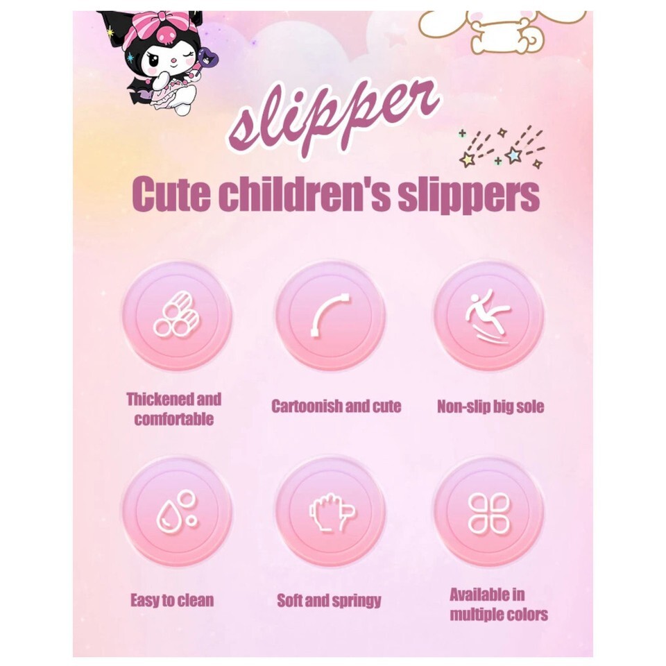 Featuring Kuromi, Kitty, Meldy cartoons, she'll love wearing them everywhere, from the beach to casual outings.