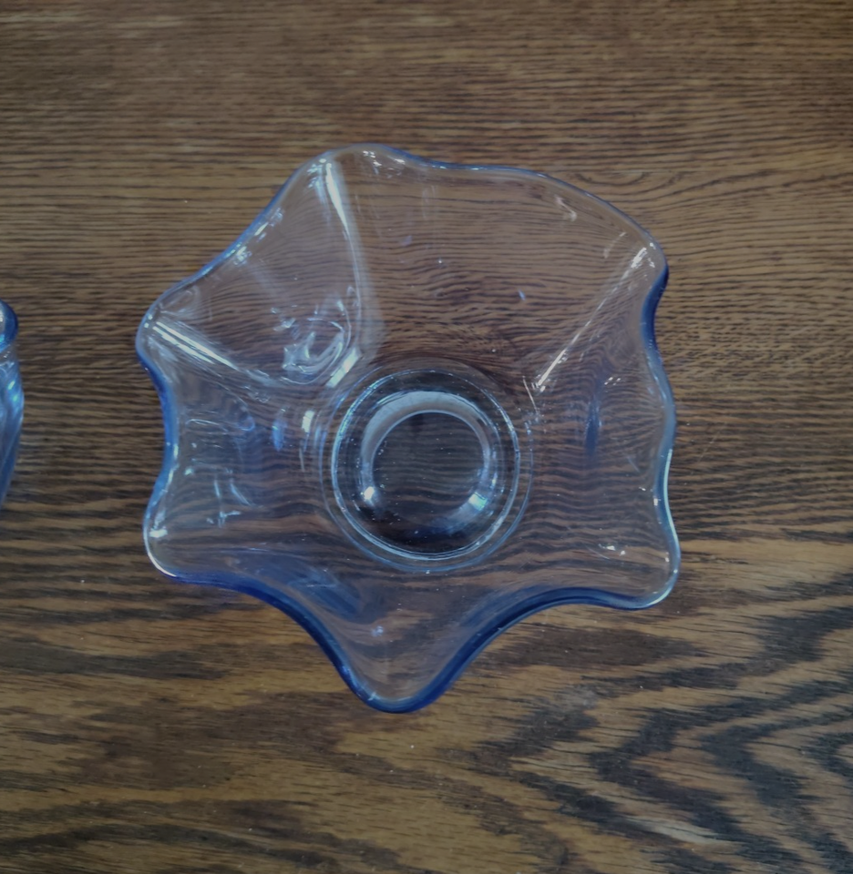 Vintage 6 in. Pale Blue Art Glass Bowl Scalloped Edge Set of 2