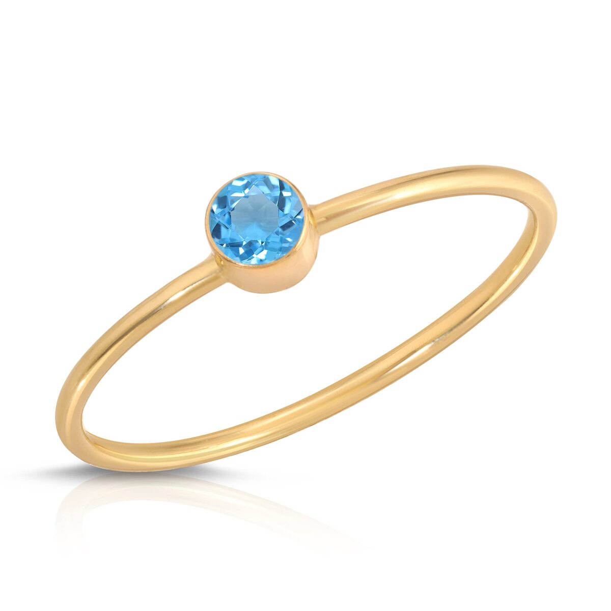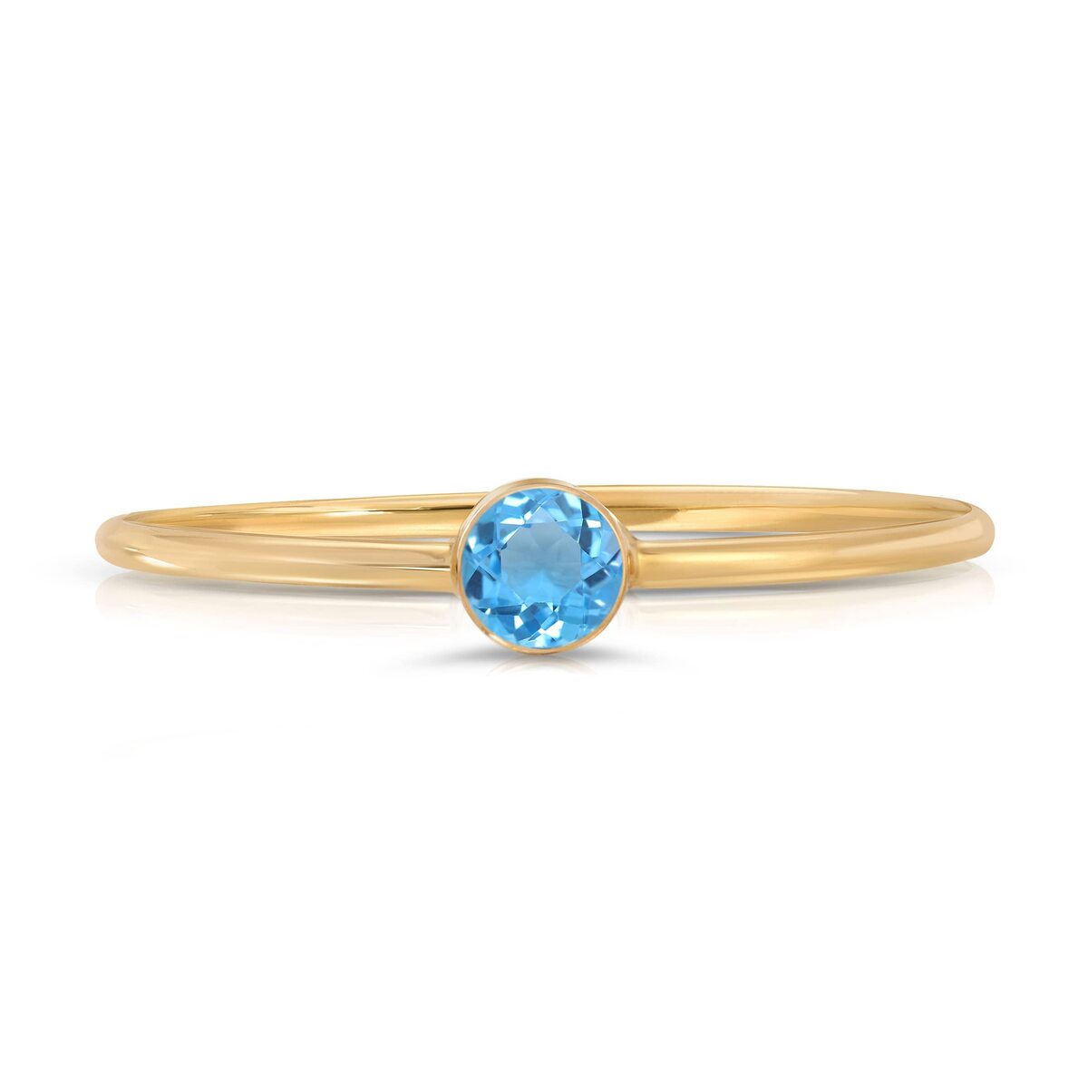 Galaxy Gold GG 14K Solid Gold Natural Blue Topaz Round Bezel Set Ring for Women,