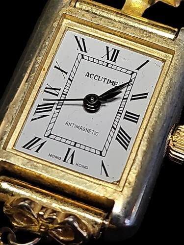 UP FOR SALE: Vintage 1970s Brooch Pin Watch Locket Gold Tone Accutime Hong Kong NOT WORKING