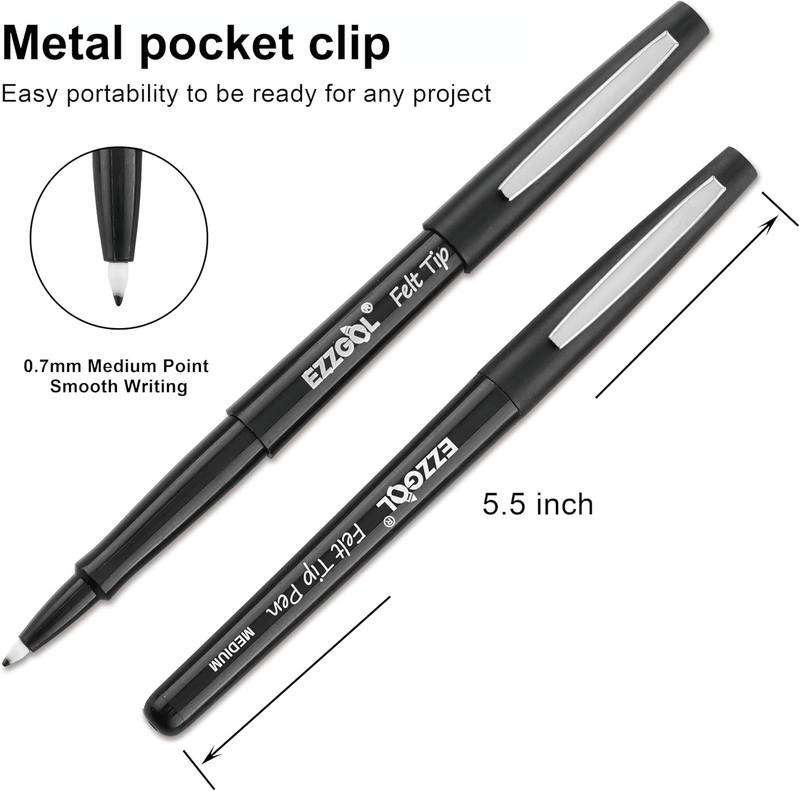 Black Felt Tip Pens, 30 Pack, 0.7Mm Premium Medium Fine Point, Felt Tip Markers