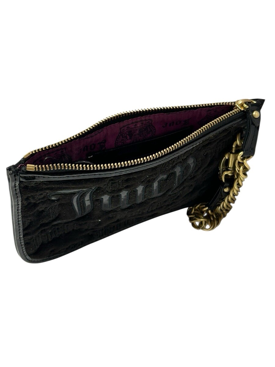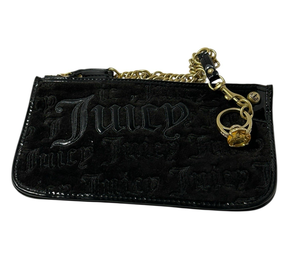 Vtg Juicy Couture Black Velour Leather Y2k Wristlet w/Ring + Carry Chain Strap really nice photos don't do this one justice!