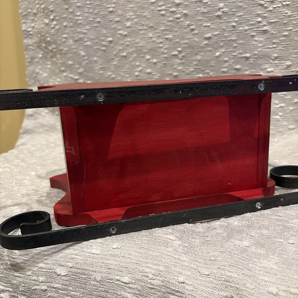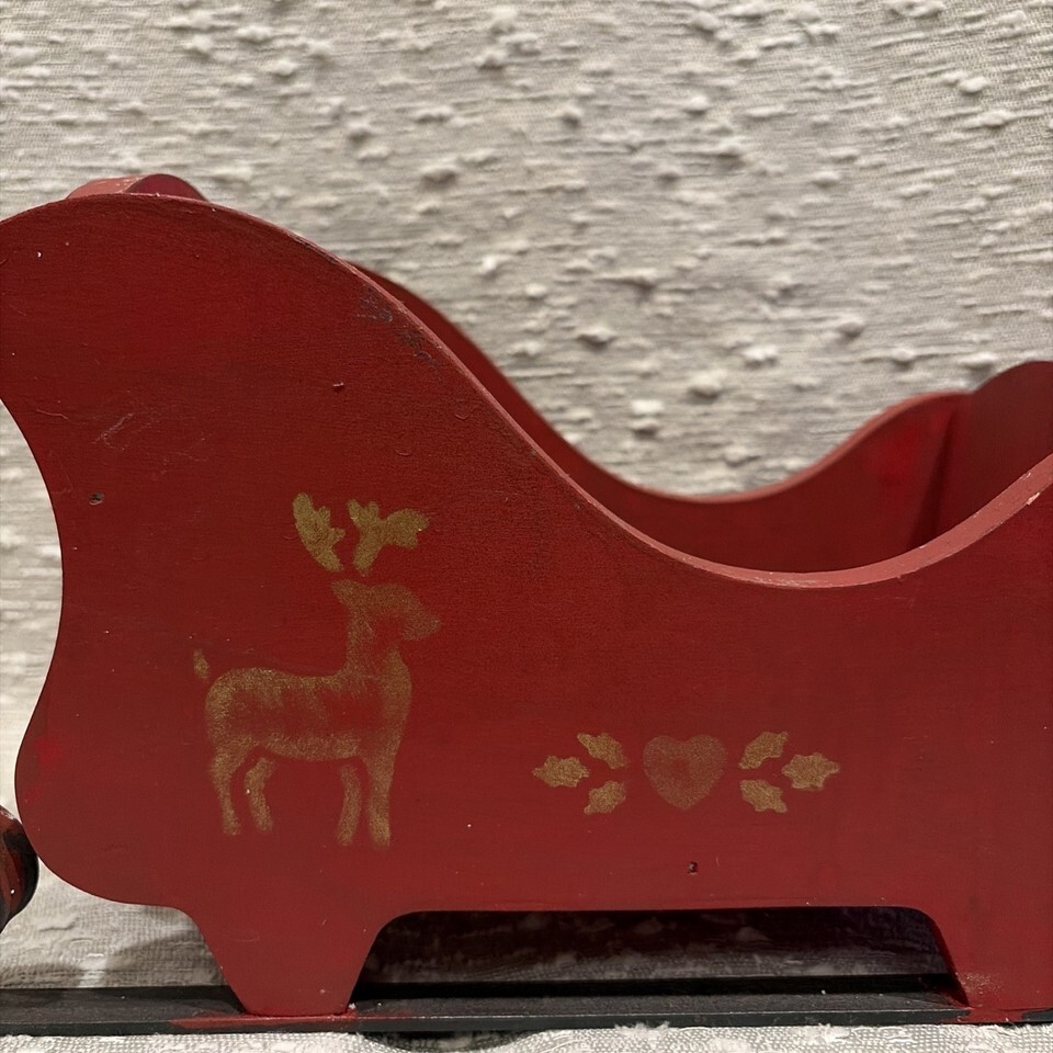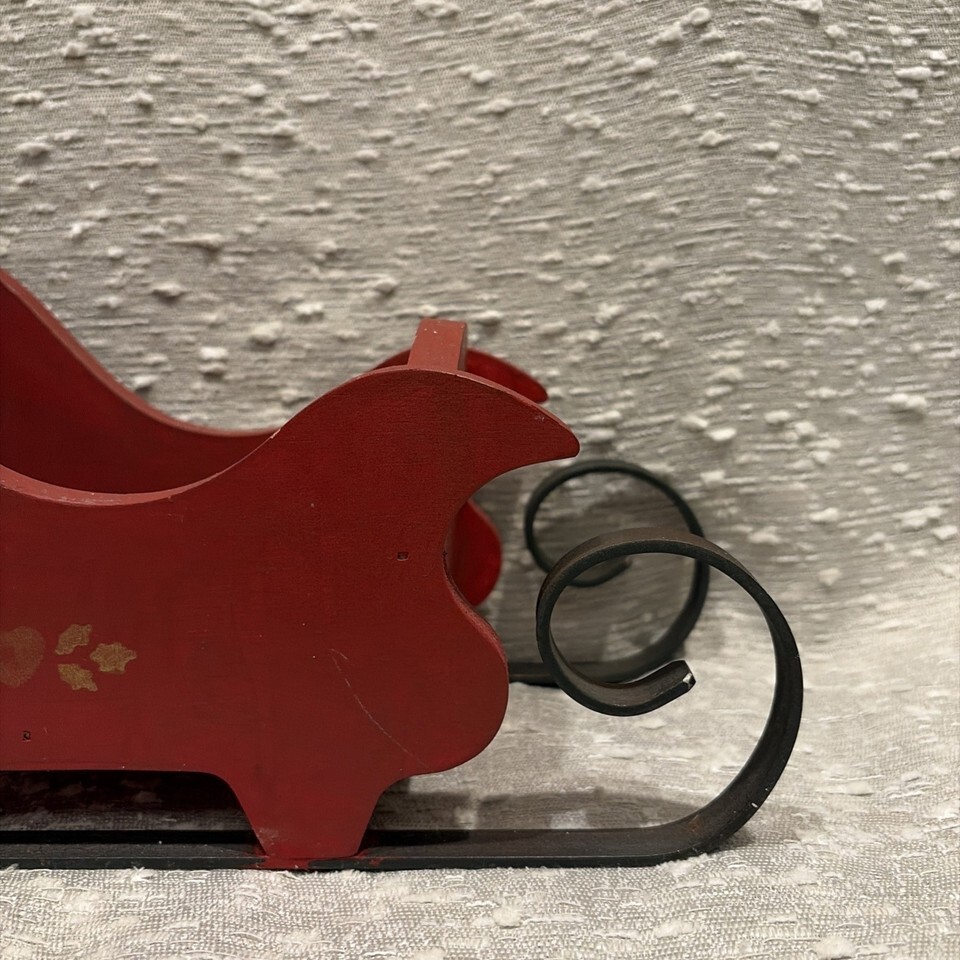 Vintage Red Wood Santa's Sleigh Christmas Decor Hand Painted Metal Runners 80s