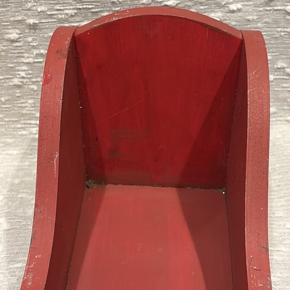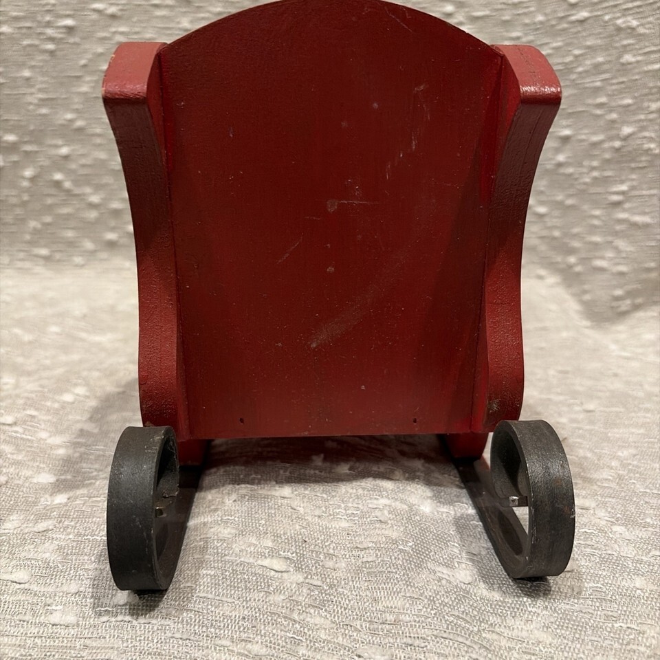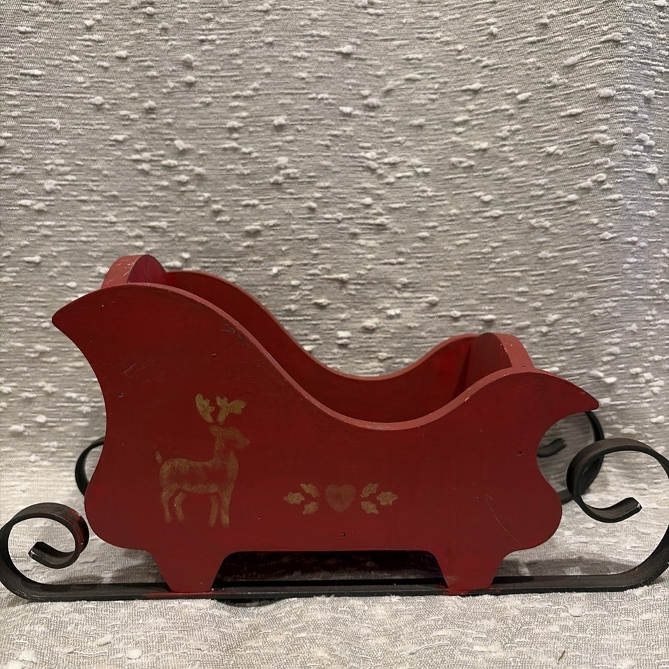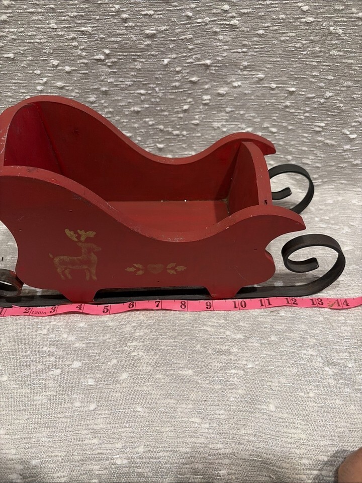 Vintage Red Wood Santa's Sleigh Christmas Decor Hand Painted Metal Runners 80s