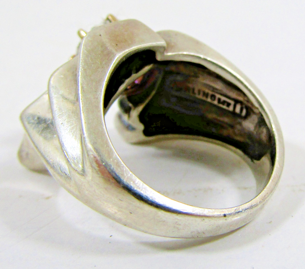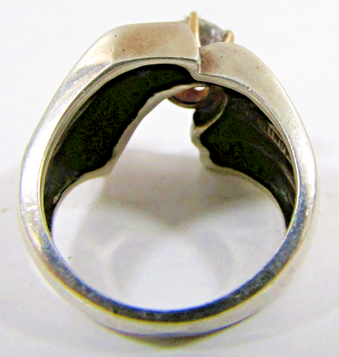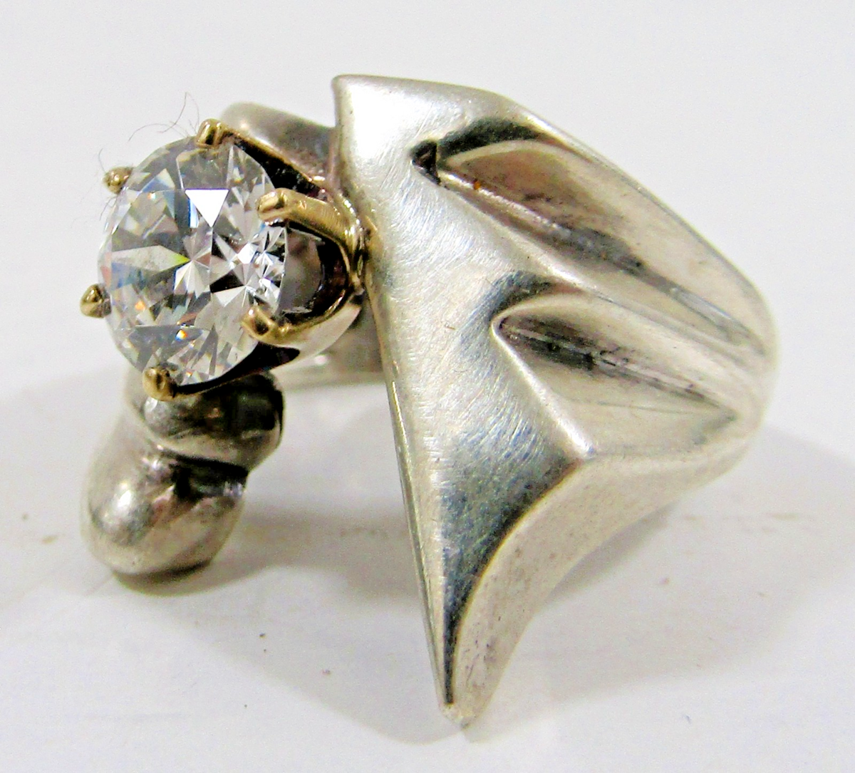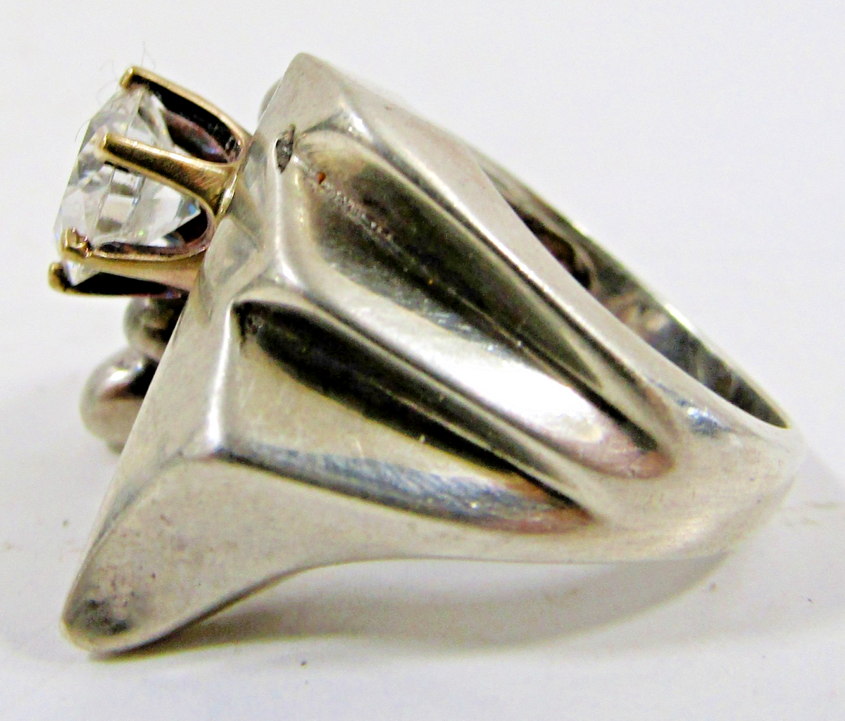 Vintage Sterling Silver and 14k Gold Modernist Ring with Cubic Zirconia
