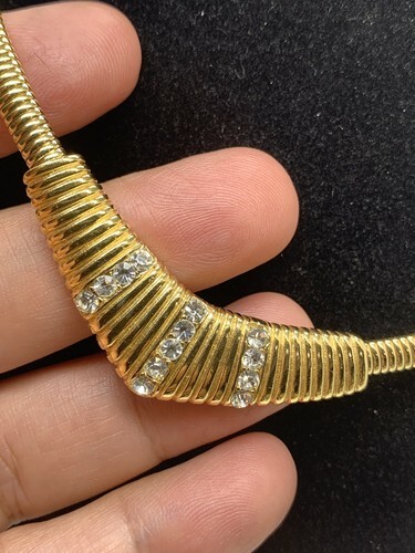 Vintage Signed Trifari Gold Tone Metal Mesh Snake Scale Choker Pendant Necklace. 17?