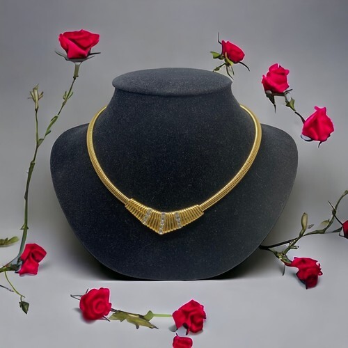 Vintage Signed Trifari Gold Tone Metal Mesh Snake Scale Choker Pendant Necklace