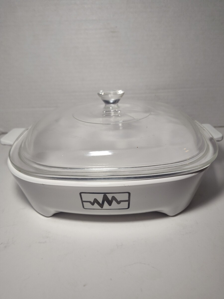This is a vintage Corning Ware Microwave Brown ?N Sear casserole, part of a short-run series made in the mid-1980s to early 1990s. These dishes were designed for microwave use at higher temperatures, allowing food to brown and crisp?something standard Corning Ware doesn?t do.