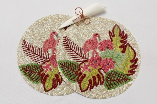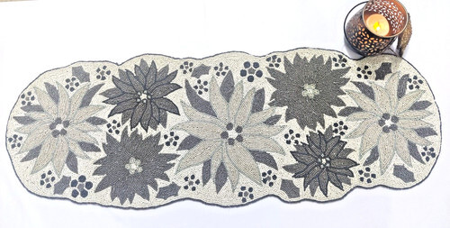 This 16" x 72" table runner in white with orange embroidered edges Bunnies and Flowers (all embroidered)