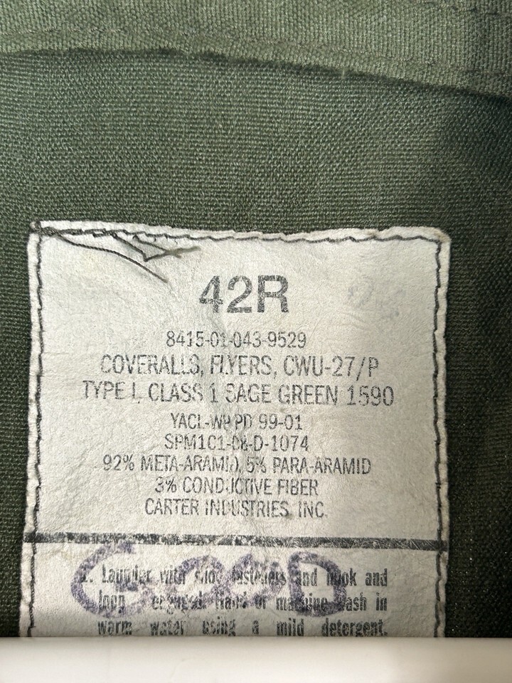 U.S. Military Flight Suit Flyer Mens Summer CWU 27/P Aramid Coveralls Sz 42 Reg