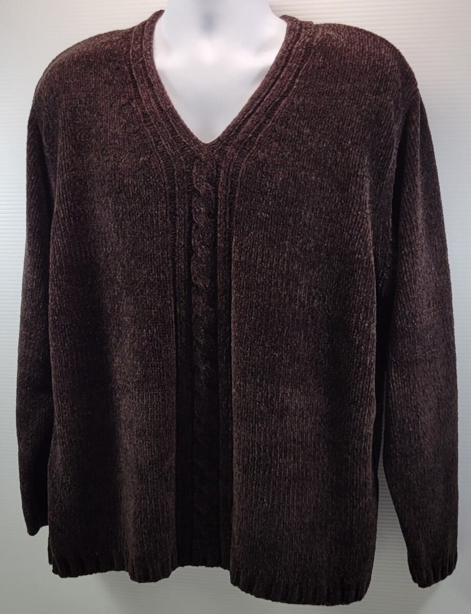 L) Women's Emily Rose Brown Pullover Soft Acrylic Sweater XL