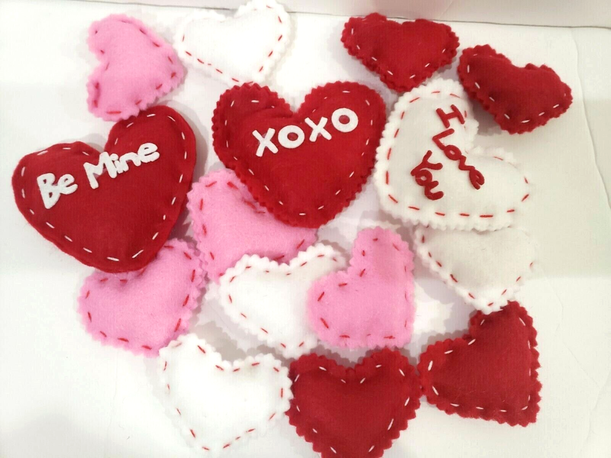 15pc Valentines Felt Pink Red Hearts Bowl Basket filler Crafts Decor