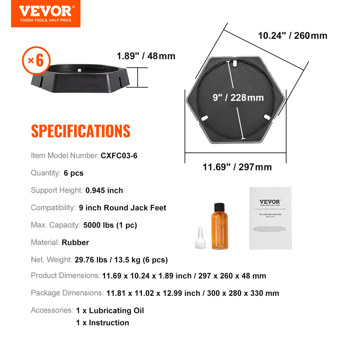 VEVOR 6pcs RV Leveling Pads 9" Landing Feet, Permanent Attached Jack Stabilizers