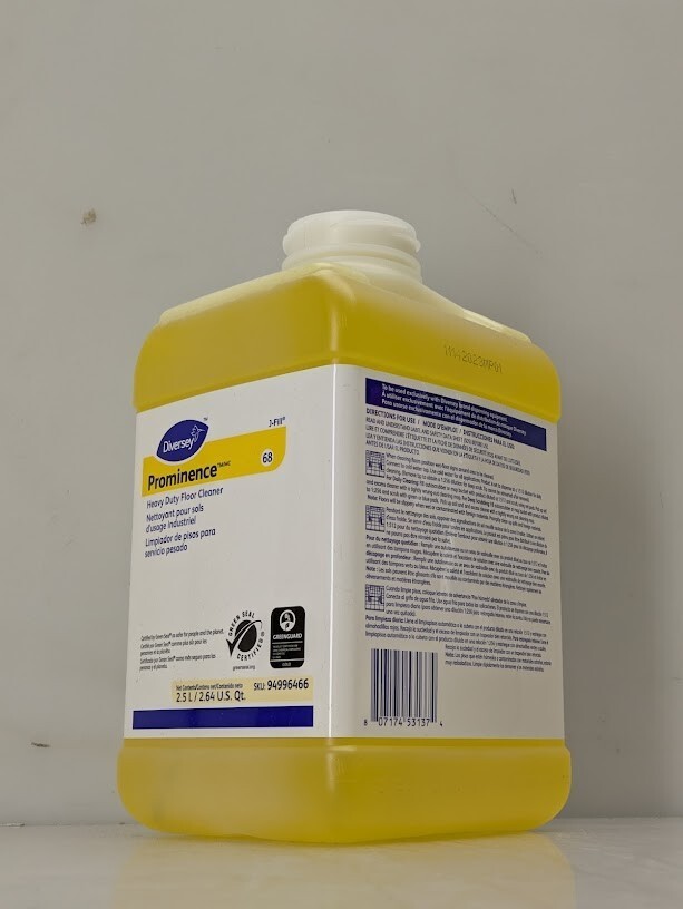 Floor Cleaner, Label Number 66, Label Color Coding Yellow, Chemical Series Prominence, Cleaner Form Liquid, Container Size 2.5 L, Container Type Bottle, Fits Dispenser Series J-Fill, NSF Rating Not Rated, pH Level 8, pH Value Neutral, Primary Chemical None, Recommended Dilution 1:256, 1:512, Concentrated, Properties Butyl Free, Nonflammable, Flash Point 200 Degrees F, VOC Content 0 Percent, Fragrance Citrus, Standards Green Seal, Net Weight 11.2, Surfaces for Use On Hard Nonporous Surfaces