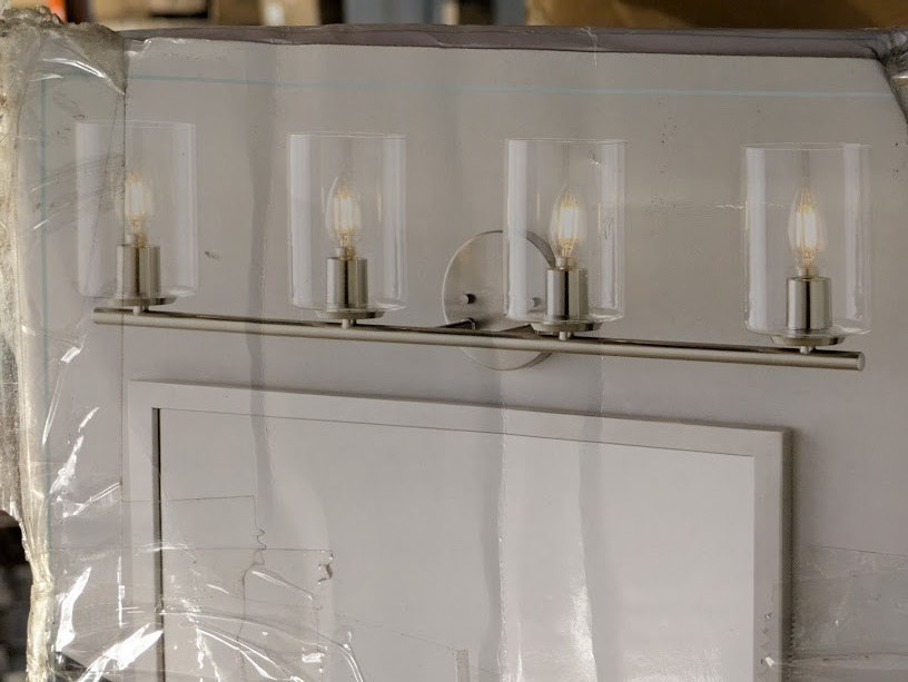FOR PARTS - Pulled parts from Hampton Bay Champlain 4-Light Brushed Nickel Vanity Light
