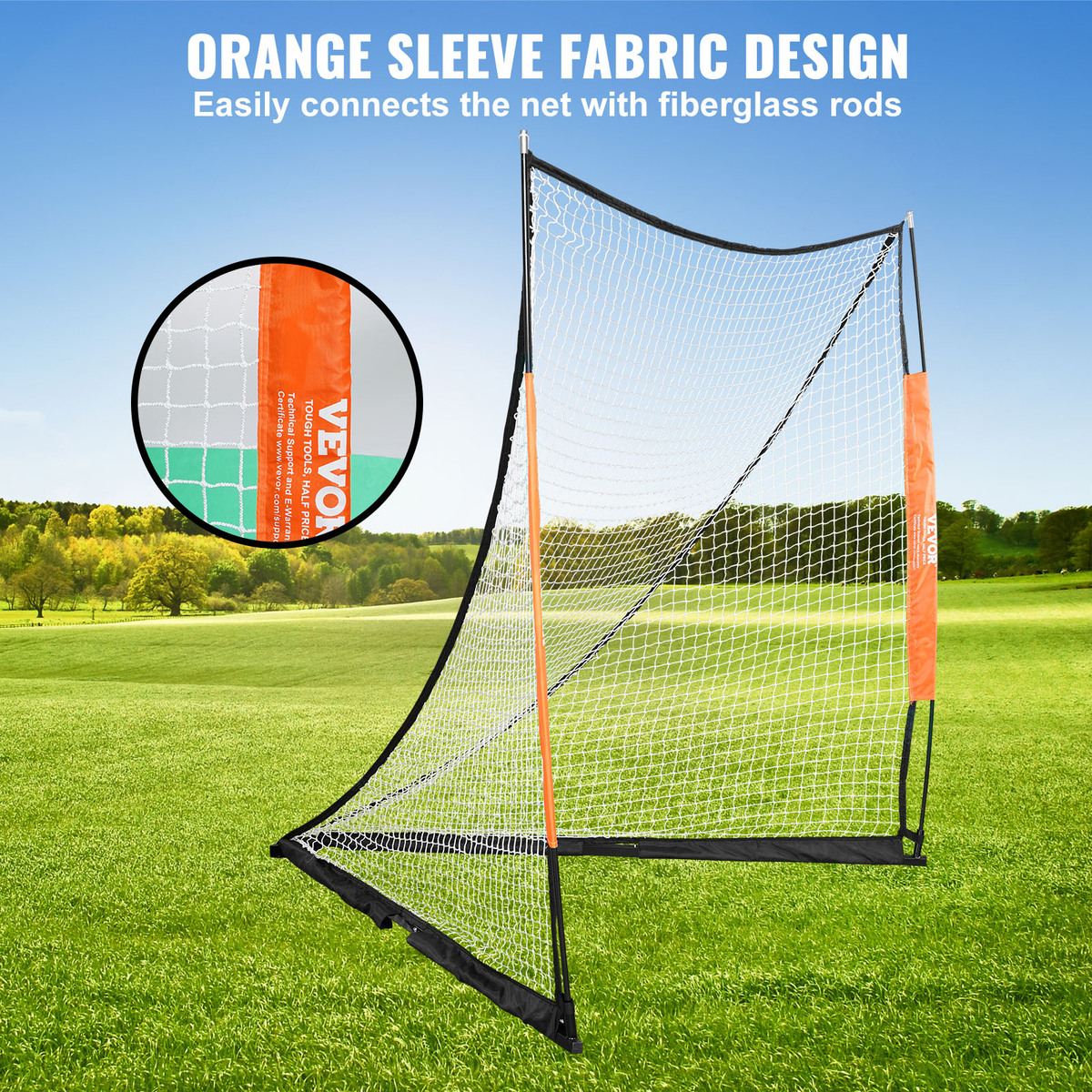 Easy Installation: This portable lacrosse net features an orange sleeve fabric design that allows for easy and secure assembly of the net and steel pillars. Its easy to install design also means that the installation process is simple and fast, greatly saving time and improving its efficiency.
