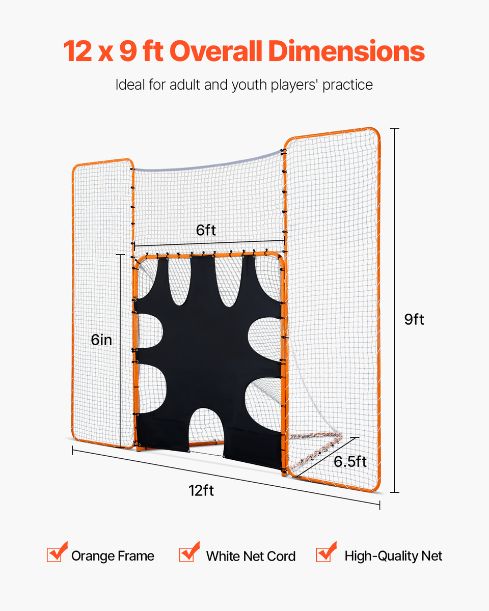 VEVOR 3-IN-1 Lacrosse Goal, 12x9 ft Lacrosse Net, Backstop and Target, Orange