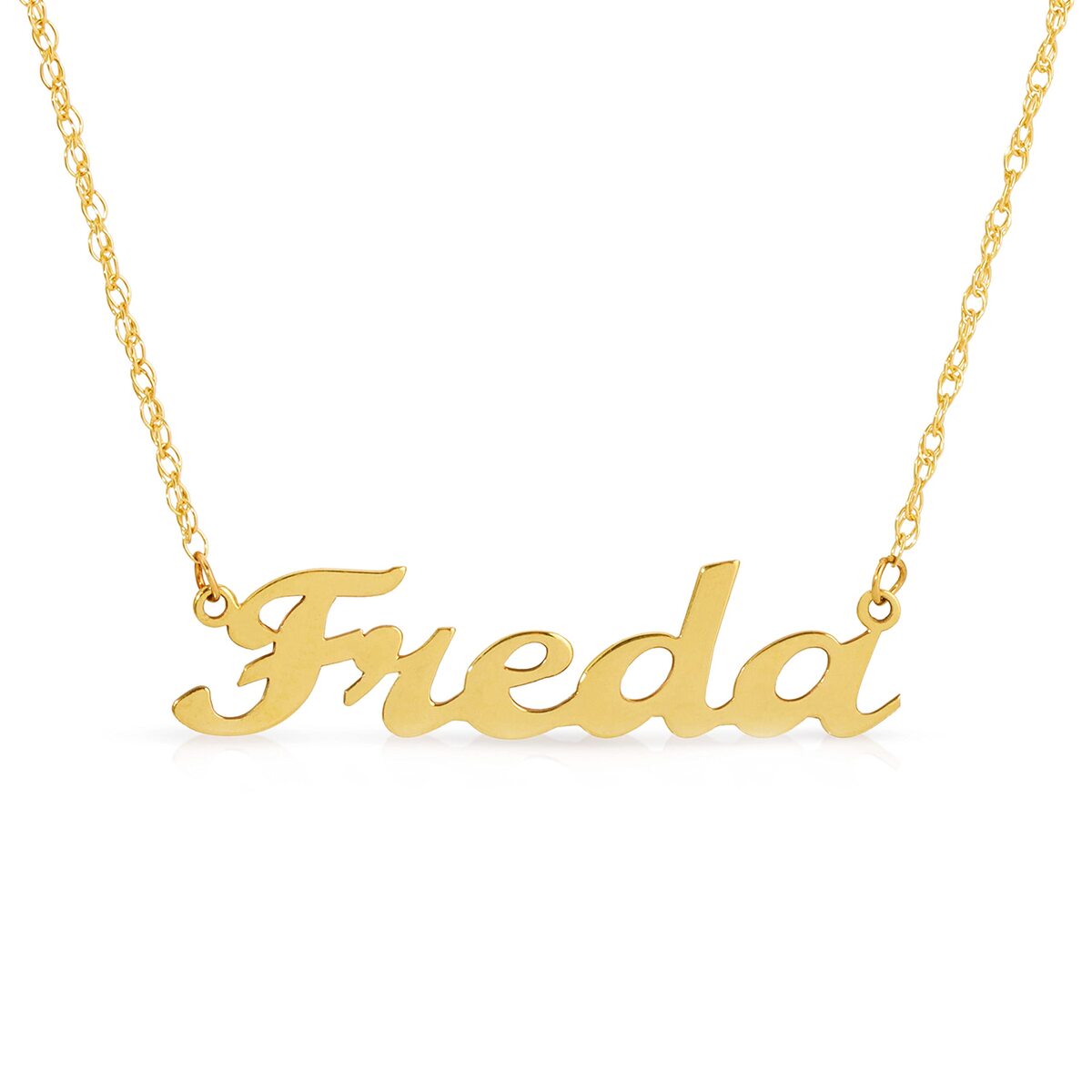 Product description: PASSION SCRIPT NEW FONT14k Solid Gold Custom Name Necklace Personalized Customizable Custom Made Any Name Mother Day Gift Women Nameplate Dainty Men Scripture Handcrafted Made in USA Fine Jewelry High Polished This customizable necklace is handcrafted in the USA here in Los Angeles California. You can enter any text or name - sweet words longitude, coordinates, names, initials, special months to design your very own unique necklace, makes you special, and show off your personality, loyalty ingenuity. Treat yourself or someone special to a bold, beautiful necklace that is truly one of a kind! With numerous designs available to complement your unique style perfectly! Click on ''Customize Now'' to make it your own. One name or word up to 10 characters no special characters. First Letter capitalized - up to letters can be capitalized. perfect gift for women, mom, wife, aunt, best friends, bridesmaid, loved ones or a special treat for yourself, and all occasions: Mother's Day, Valentines, Wedding, Anniversary, Birthday, Christmas. Chain Length Available: 14inch, 16 Inch, 18inch, 20 Inch, 22 Inch. Chain Thickness 1.15mm Available Gold Color ? 14K Solid Yellow Gold, 14k Solid Rose Gold, 14k Solid White Gold Stamped Gold 14k Solid MADE IN USA. Gift Box Available.