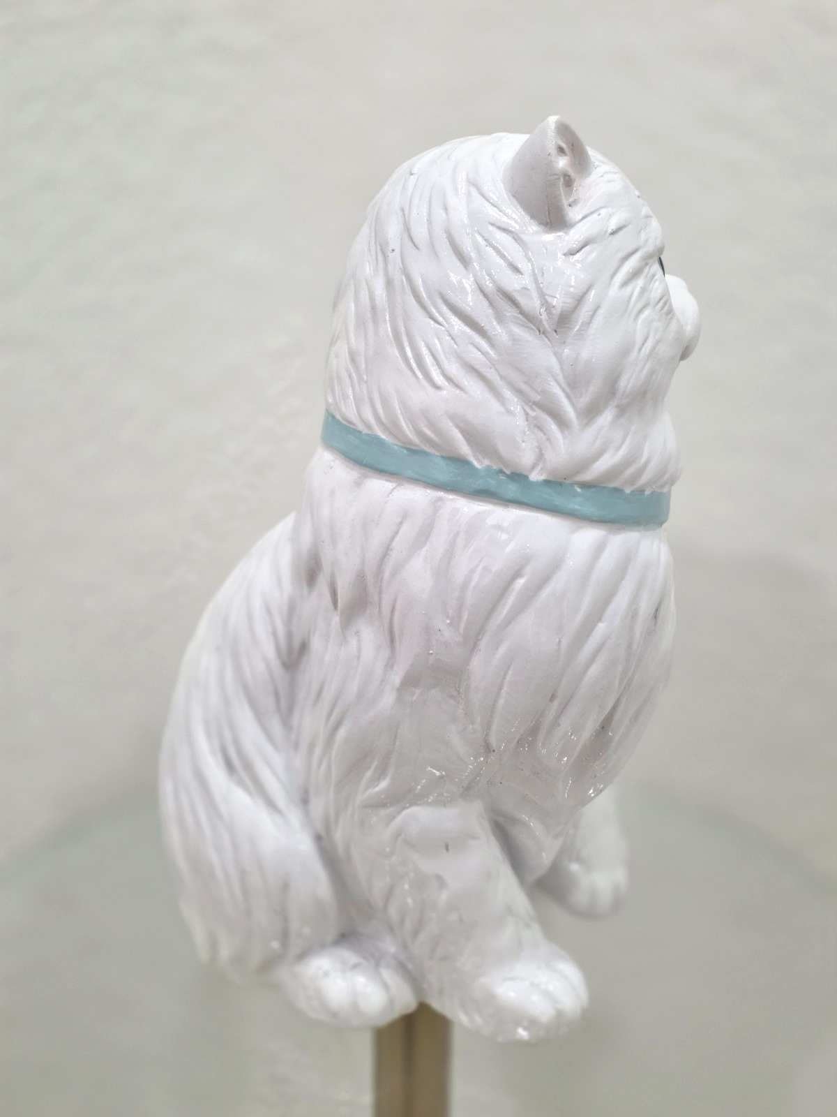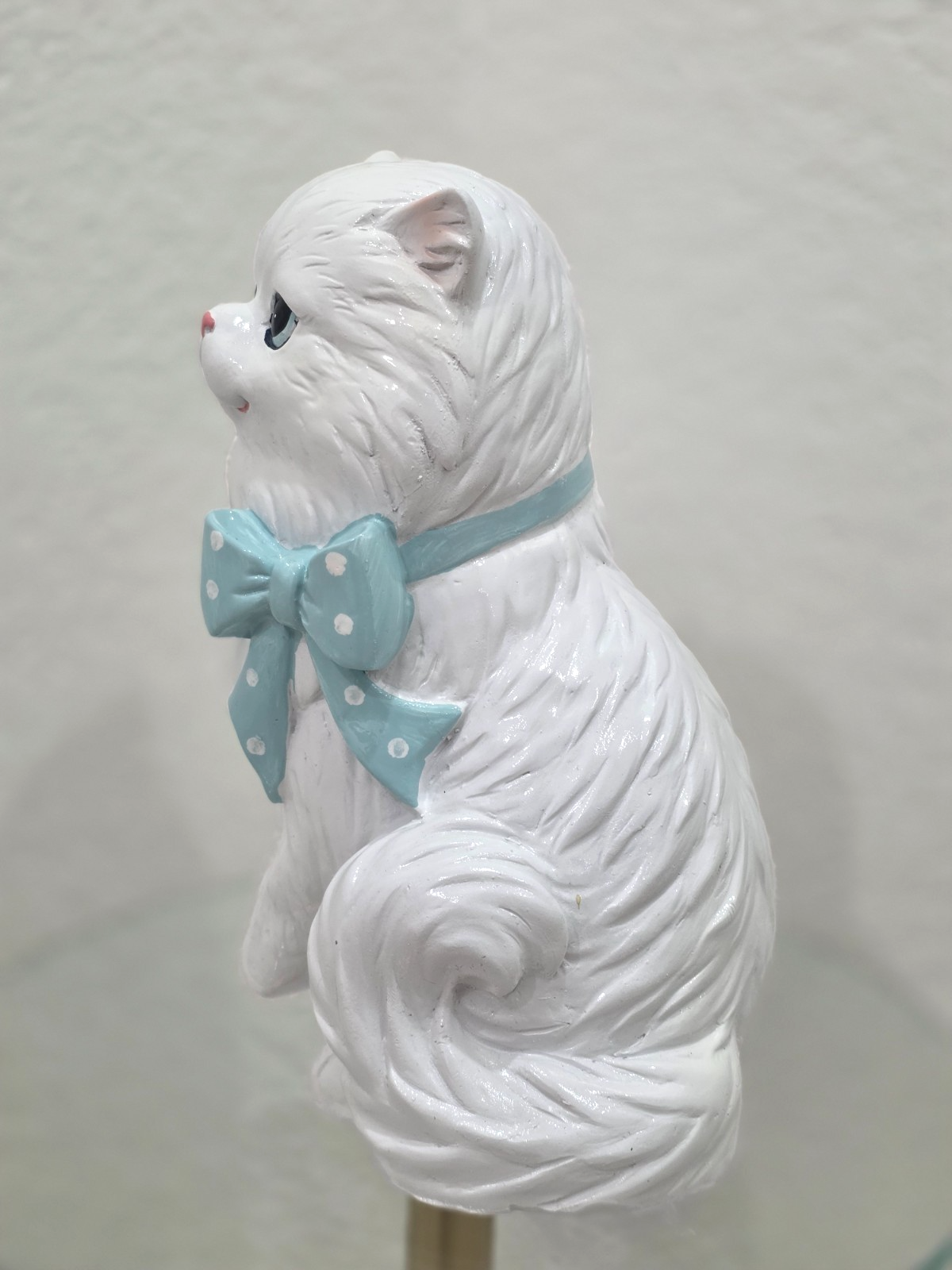 Up for sale we have this adorable white cat with a blue bow. This kitty will look amazing anywhere you place him. Made of resin he stands approx 9" tall.