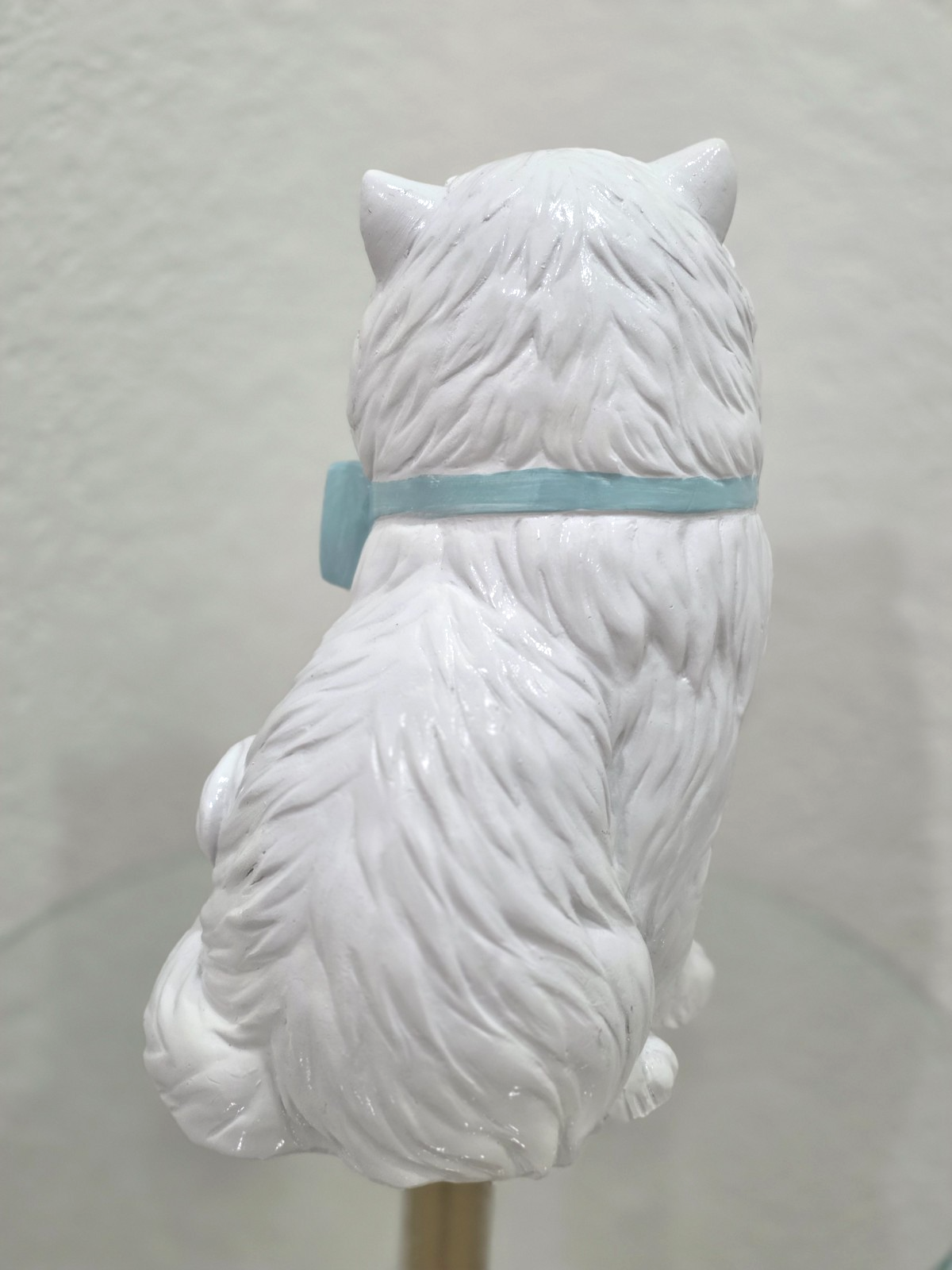 White Resin Cat Blue Coquette Bow Figurine and similar items