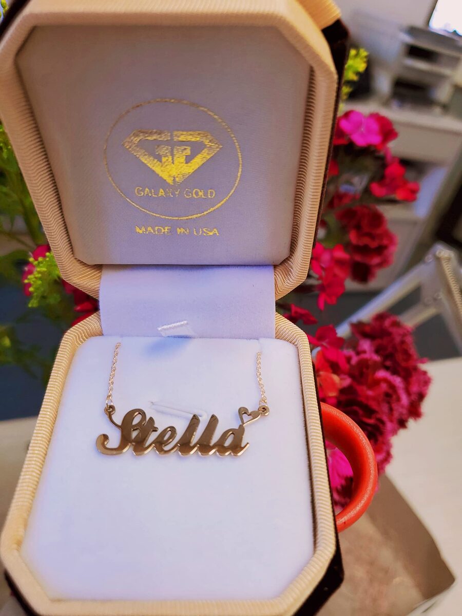 Product description: OLD ENGLISH FONT 14k Solid Gold Custom Name Necklace Personalized Customizable Custom Made Any Name Mother Day Gift Women Nameplate Dainty Men Girl Scripture Handcrafted Made in USA Fine Jewelry High Polished This customizable necklace is handcrafted in the USA here in Los Angeles California. You can enter any text or name - sweet words longitude, coordinates, names, initials, special months to design your very own unique necklace, makes you special, and show off your personality, loyalty ingenuity. Treat yourself or someone special to a bold, beautiful necklace that is truly one of a kind! With numerous designs available to complement your unique style perfectly! Click on ''Customize Now'' to make it your own. One name or word up to 10 characters no special characters. First Letter capitalized - up to letters can be capitalized. perfect gift for women, girls, mom, wife, girlfriend, sister, kids, child, aunt, best friends, bridesmaid, loved ones or a special treat for yourself, and all occasions: Mother's Day, Valentines, Wedding, Anniversary, Birthday, Christmas. Chain Length Available: 14inch, 16 Inch, 18inch, 20 Inch, 22 Inch. Chain Thickness 1.15mm Available Gold Color ? 14K Solid Yellow Gold, 14k Solid Rose Gold, 14k Solid White Gold Stamped Gold 14k Solid MADE IN USA. Gift Box Available.