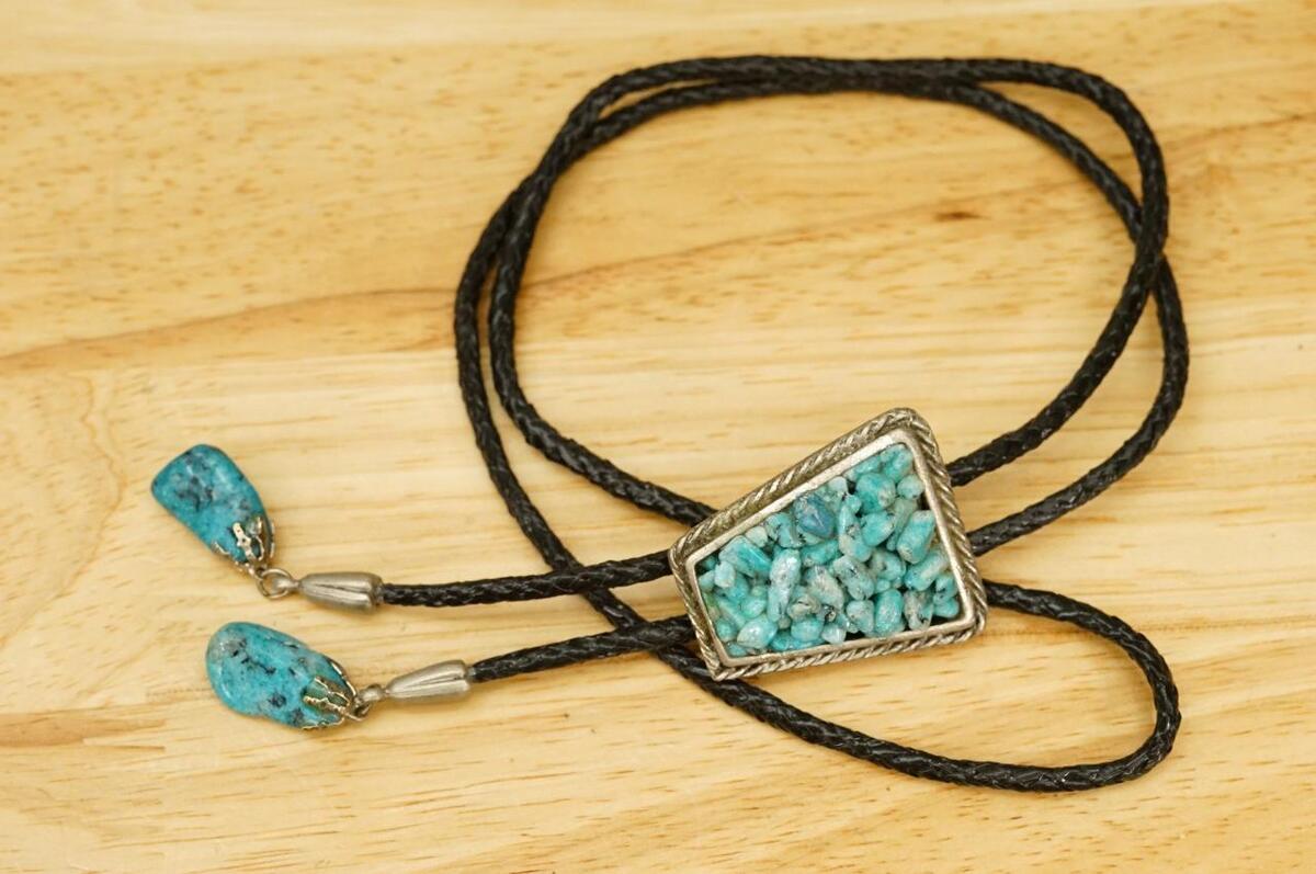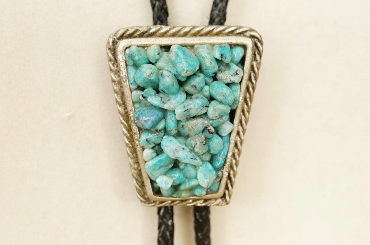 Vintage Southwestern Jewelry Amazonite Blue Gemstone Rough BOLO Tie Necklace