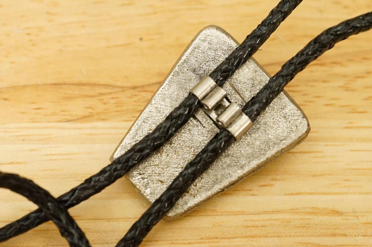 Vintage Southwestern Jewelry Amazonite Blue Gemstone Rough BOLO Tie Necklace. Black woven cors. Base pewter tone metal.