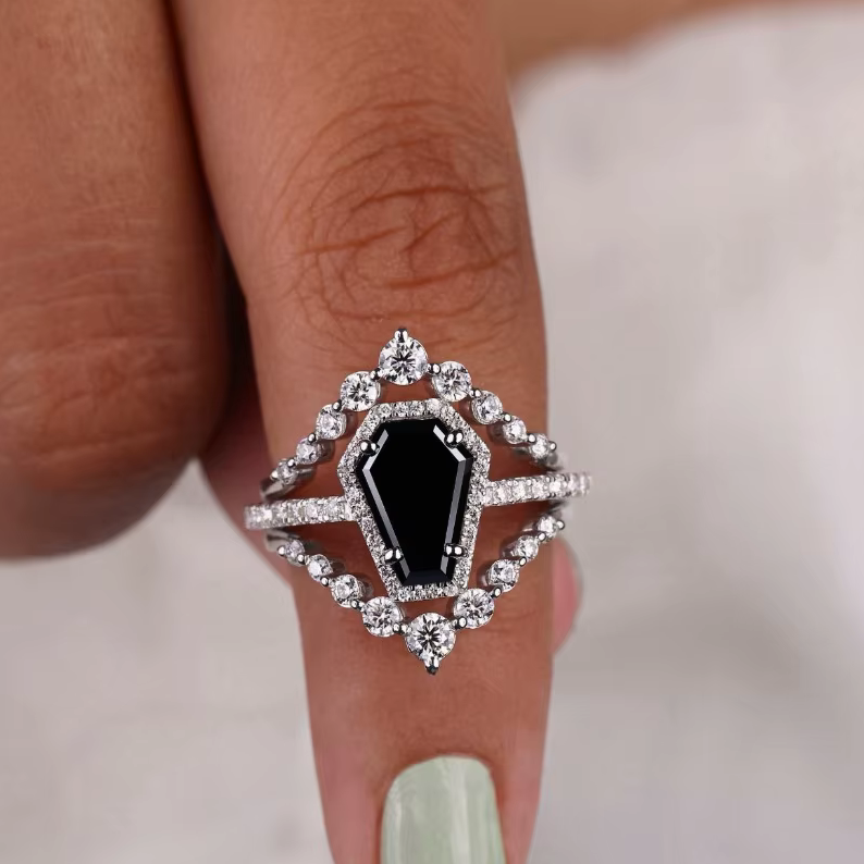 Creative Silver Plated Coffin Design Black Zirconium Accent Style Ring (6-10)