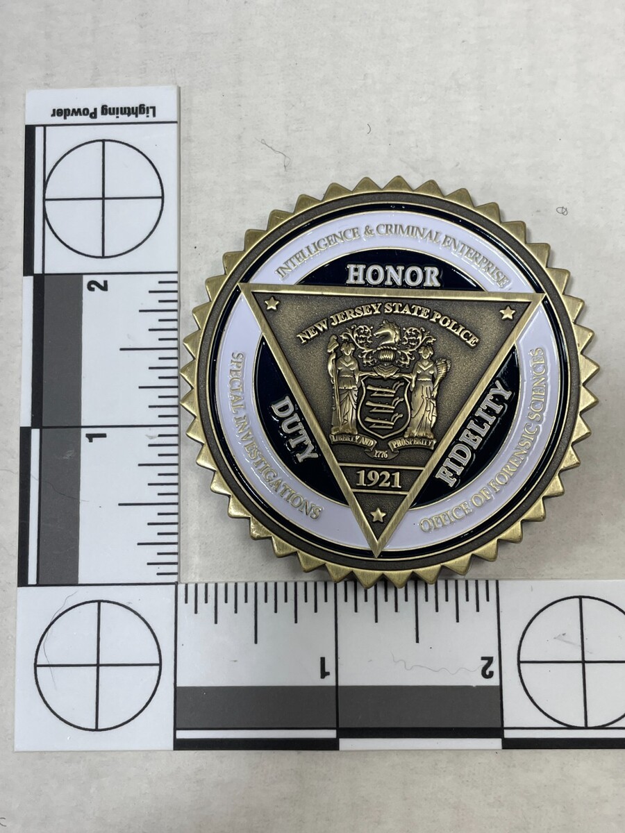 NJSP Investigations Branch Forensic Intelligence Challenge Coin from a pet and smoke free home