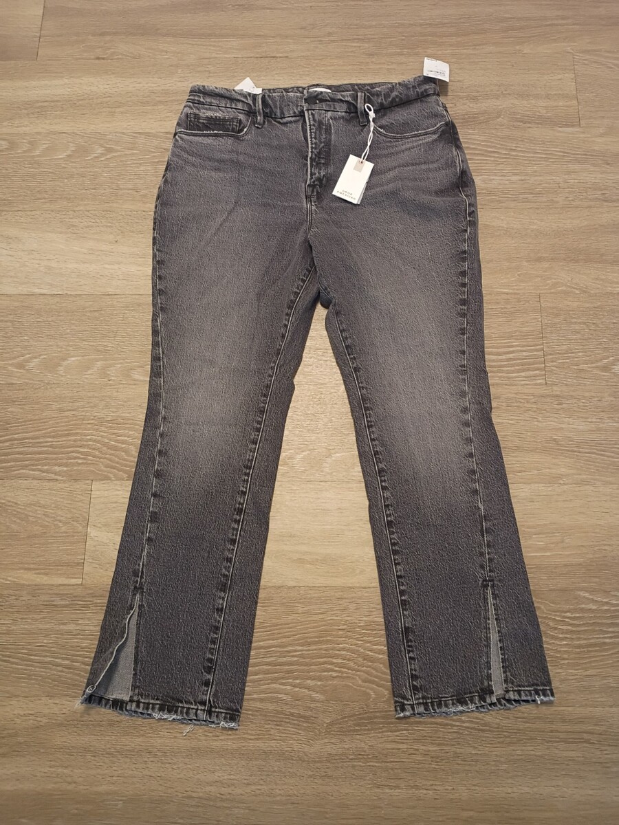 Good American Good Straight Jeans 12/31 Black 34/28. Good curve Straight jean. Great look with slits on bottom of pant leg with distress. NWT