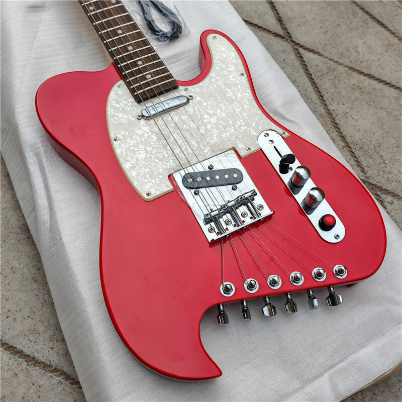 Blue/Red Normal Frets 6 Strings Headless Electric Guitar,Mahogany Body HG57