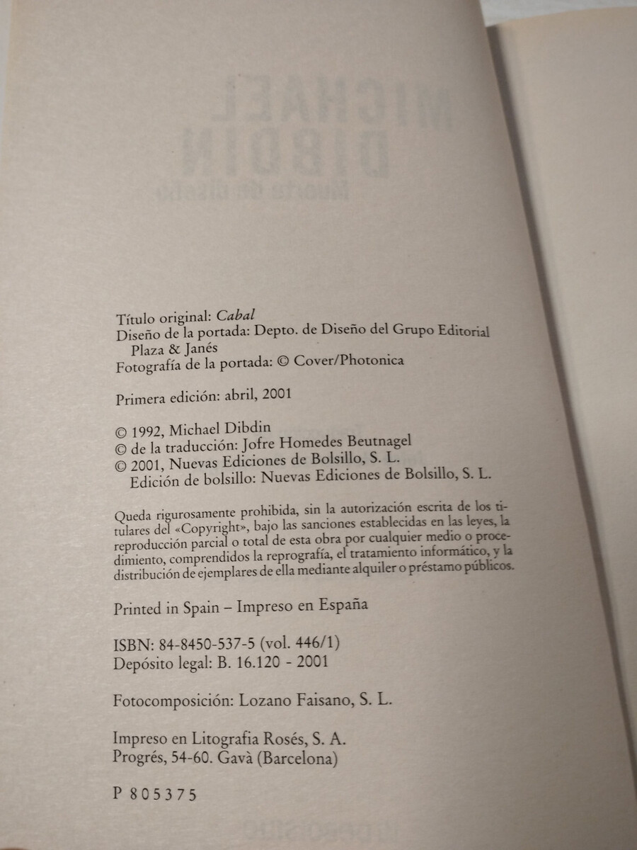Muerte de Diseño Michael Dibdin 2001 - LIBRO Español Am